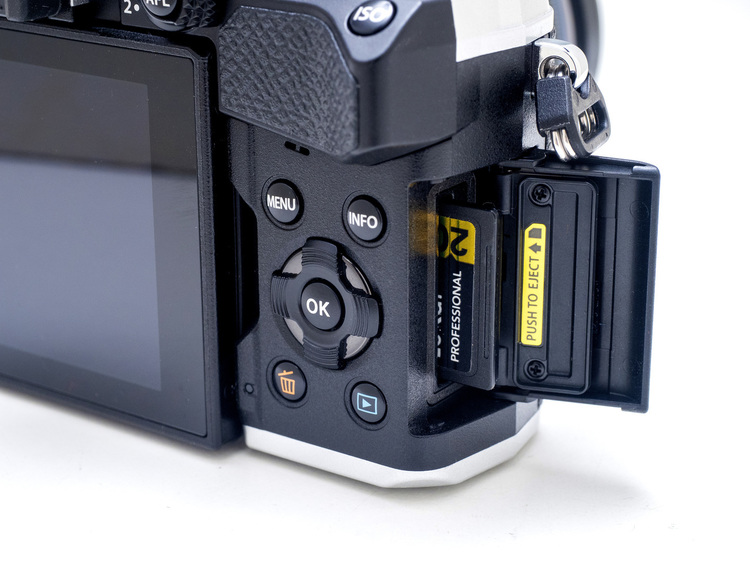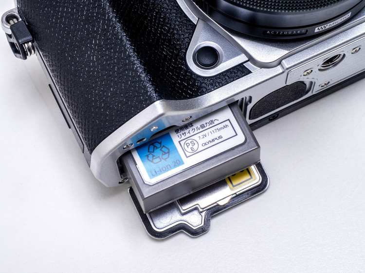 せっかくイメージセンサーが約2037万画素となったことで現行E-M1系モデルと解像度が揃ったにも関わらず、これら二機種を併用する際の使い方に差異が生まれてしまったことは非常に残念だ。(オプションとして外付けグリップ ECG-5が用意されているが、縦位置シャッターボタンはなく、充電池BLS-50をセカンドバッテリーとして装填することもできない)