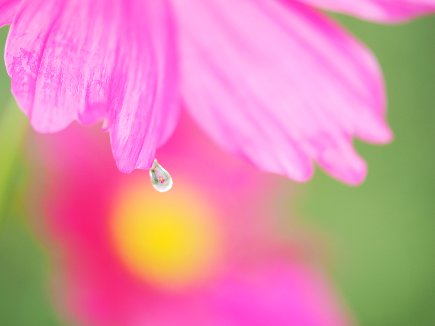 雫の中に映し込む花は、コスモスなど「子供が描く花の絵」のようないかにも花らしい形のものが向いています。