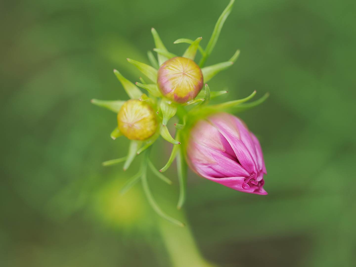 一見すると、二つの蕾と咲きかけの花を撮っただけの写真。