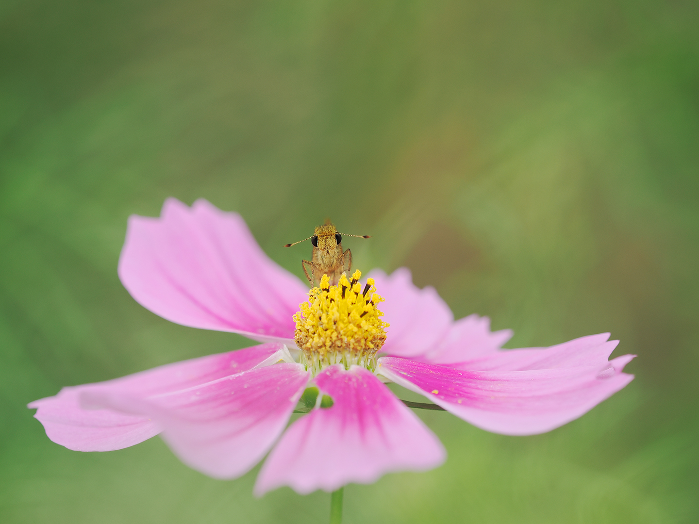 コスモスのシベ、漠然と見ているだけだと「真ん中に黄色い丸いところがあるなぁ」ぐらいの印象しかないかもしれません。