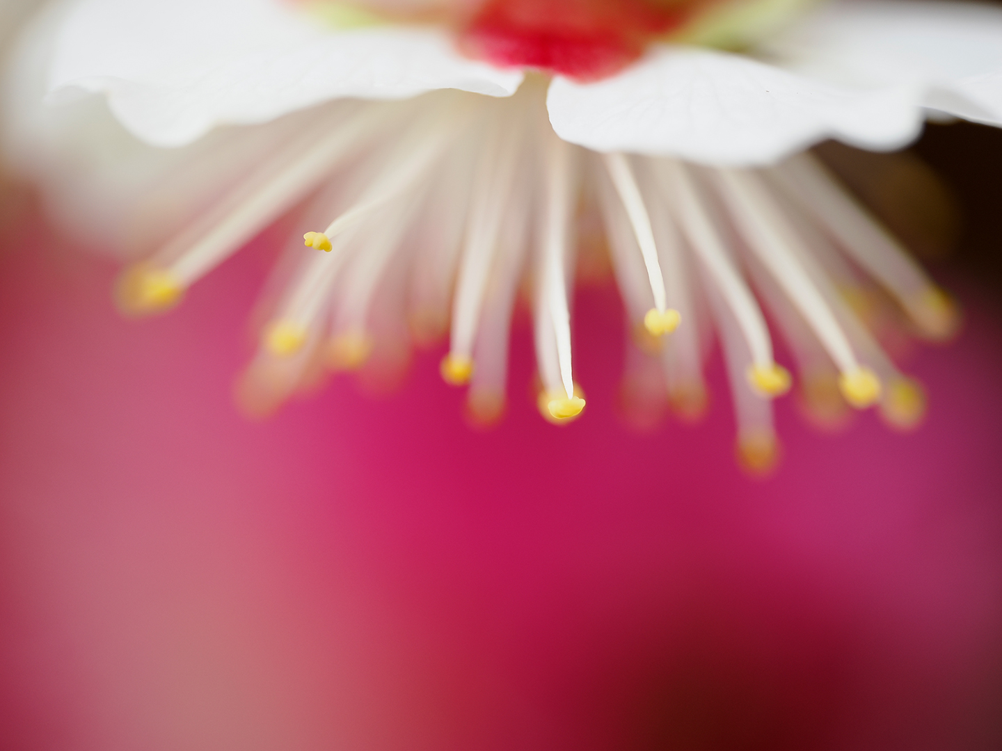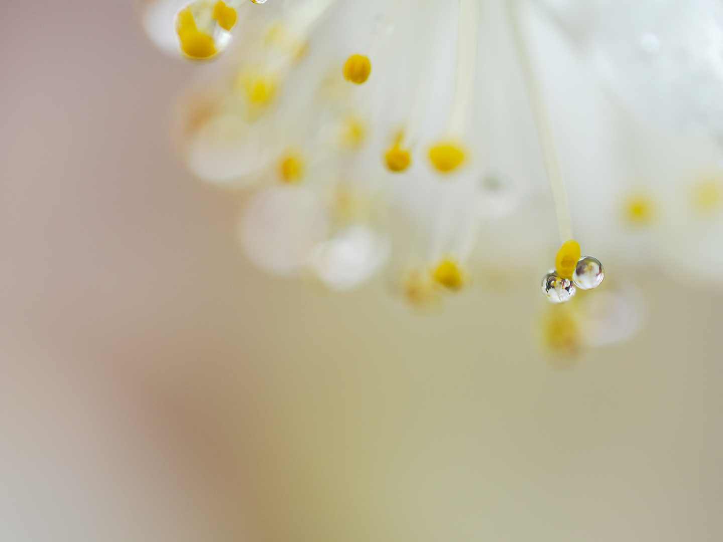 たくさんのシベが密集していますが、クローズアップで絞り開放にすると被写界深度が浅くなるため、主役以外のシベをボカすことができます。