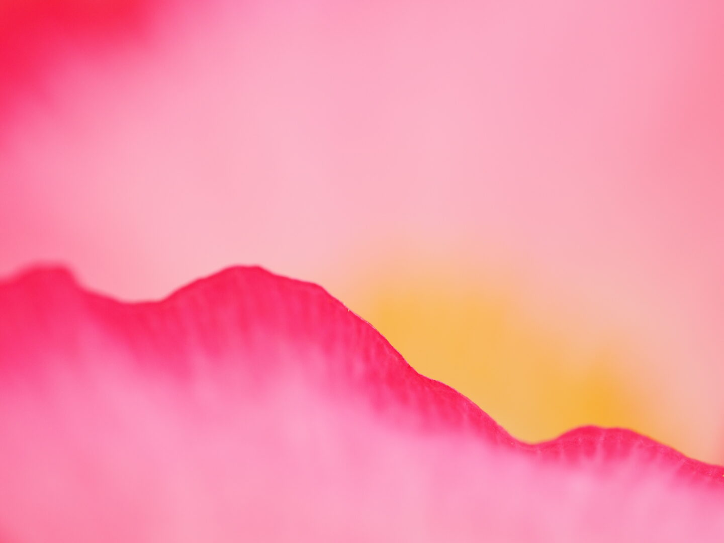 画面からはみ出るほどにクローズアップしました。見せたかったのは花びらの重なりです。逆光で花びらが透けているので、花びらの重なった部分とそうでない部分で濃度が異なり、それが美しく感じました。一輪を画面にすっぽり収めると「花」として全体を見せることになりますが、部分をアップで捉えることで「花びらの重なり」が主役になります。伝えたいものは何かをフレーミングで明確にしましょう。しかし、花をアップで撮ることを意識するだけではなく、わずかに入った背景も疎かにしてはいけません。すっきりとしたボケと華やかな彩りで画面全体を無駄なく埋めていきましょう。