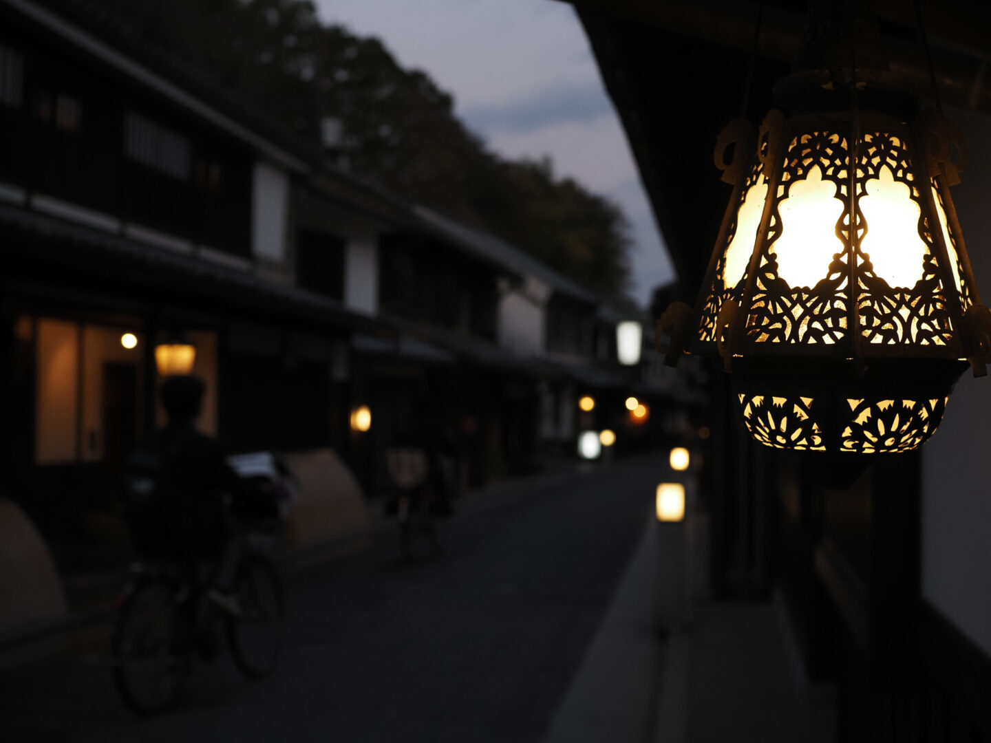 あかりが灯り出した倉敷・美観地区で町並みの様子がわかるようにF2.8に絞って手持ち撮影。ISO感度は640とそこまで高くないですが、1/160秒でシャッターが切れました。