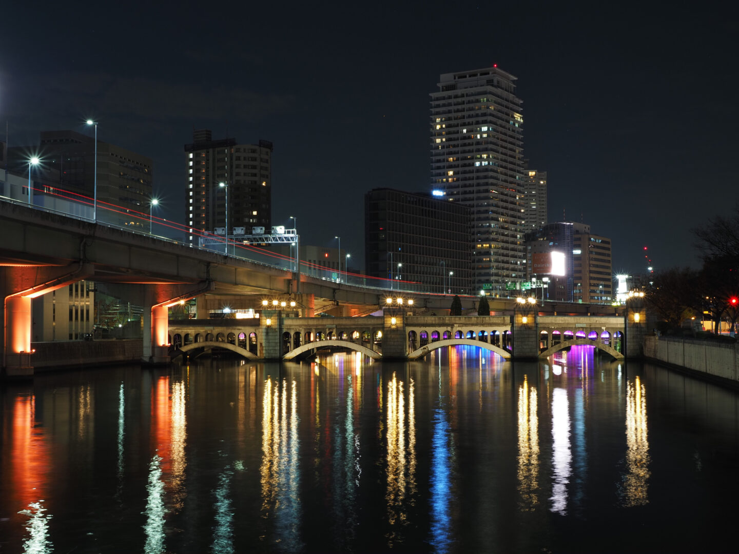 絞りをF10以上に絞り込み、街灯や高速道路上の灯りに光条が出るように撮影。前述の通り、14本の光条が確認できます。(どちらも三脚を使用)