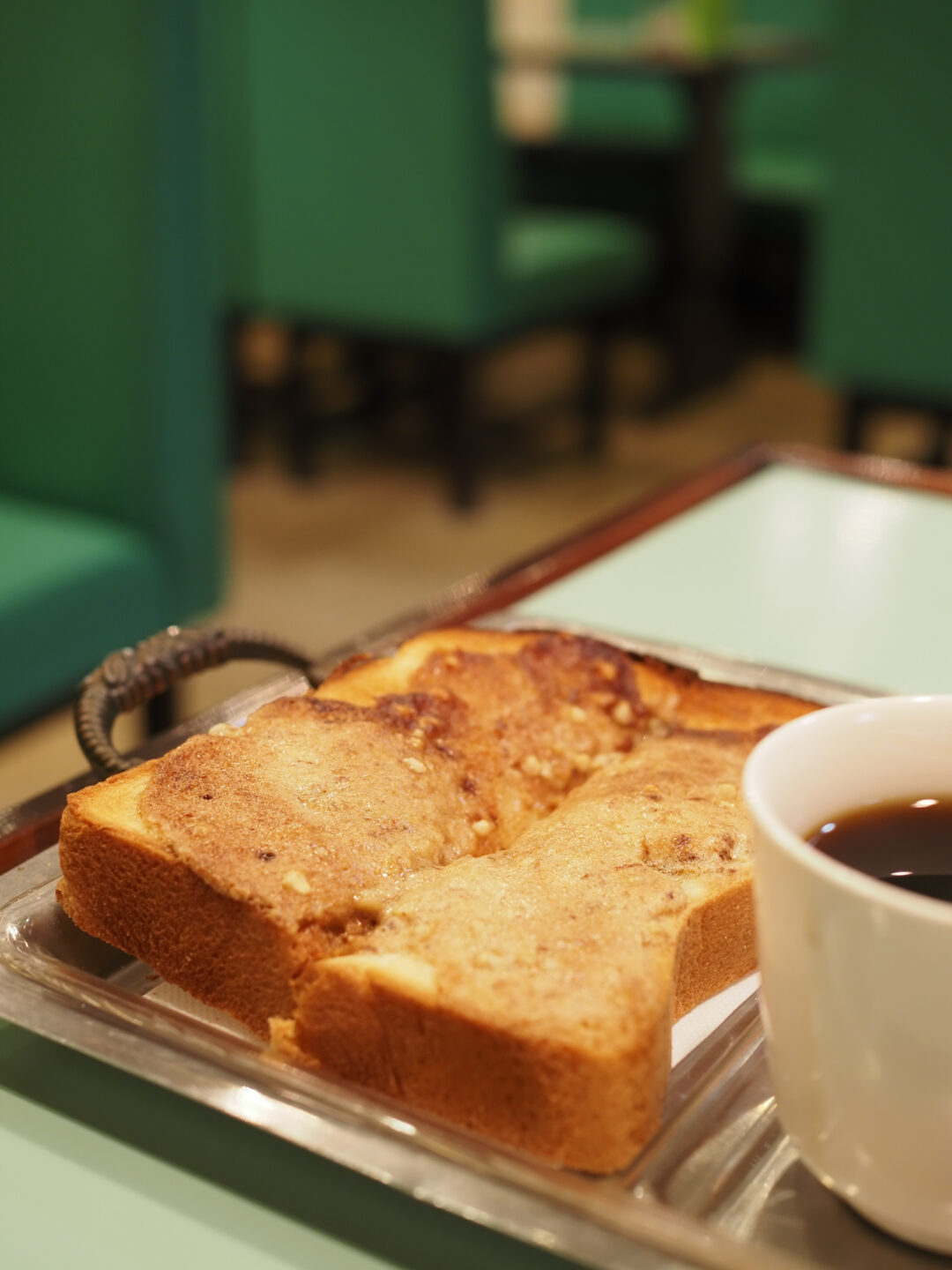 姫路名物「アーモンドトースト」のモーニングセットをレトロな喫茶店でいただきました。お店のレトロ感も画角に入るように意識して撮影しました。