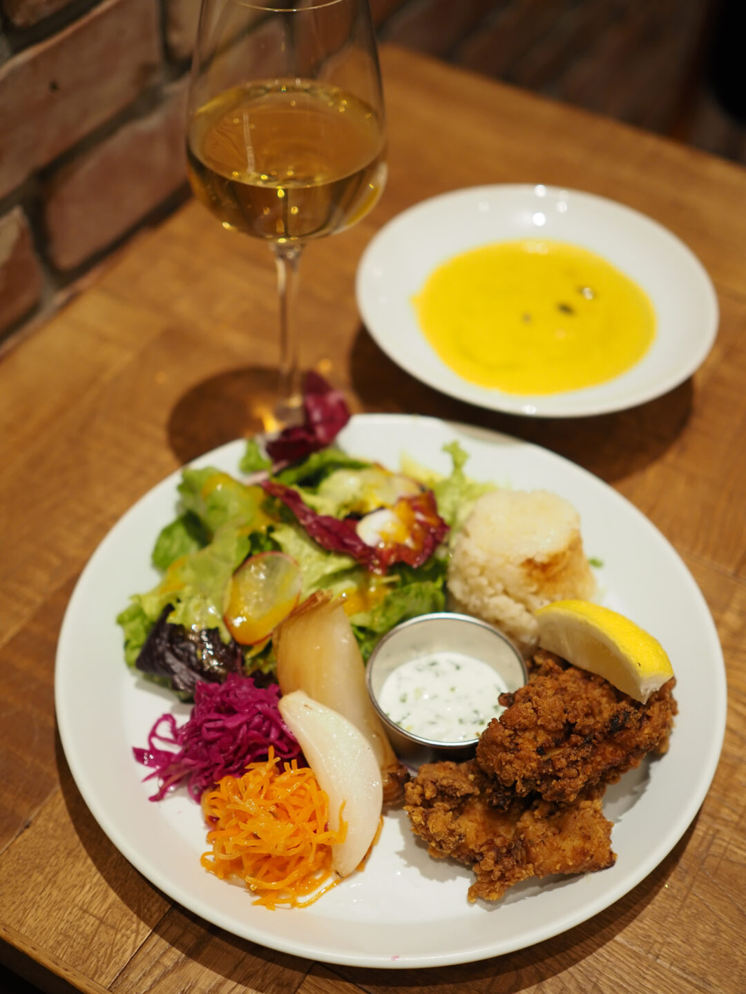 テーブル上のお料理全体をフレームに収めるためにはこのレンズの画角では少し狭く、椅子から少し立ち上がって撮影しました。