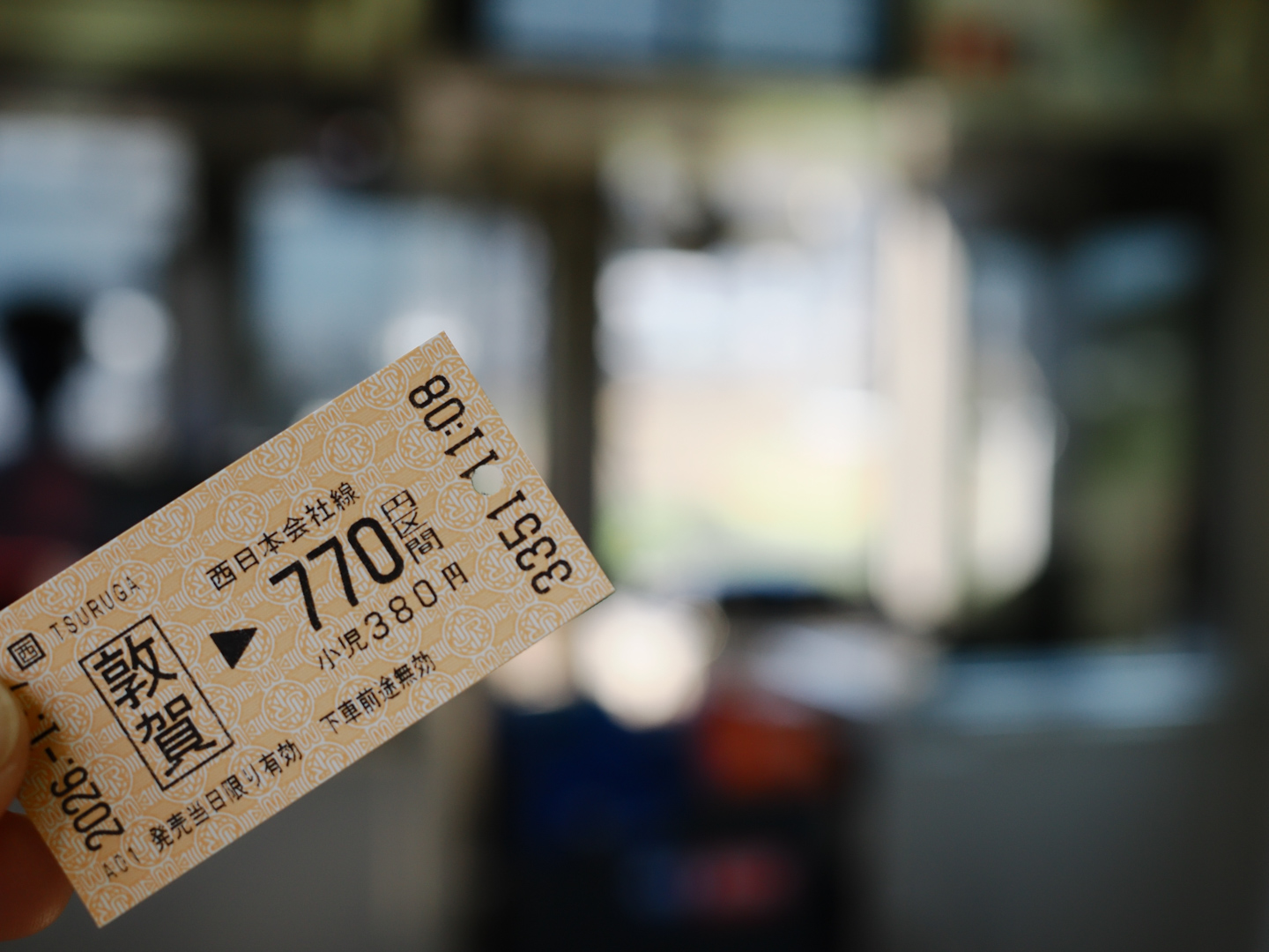 ICカード非対応路線ということで、久しぶりにJR線で切符を購入しました。切符の背景デザインにJRのマークの他、JR西日本であることがわかる「W」の文字が入っていることもしっかり見て取れます(これ、JR東日本だと「E」、JR九州だと「K」というように会社ごとにアルファベットが変わるのですね!)
