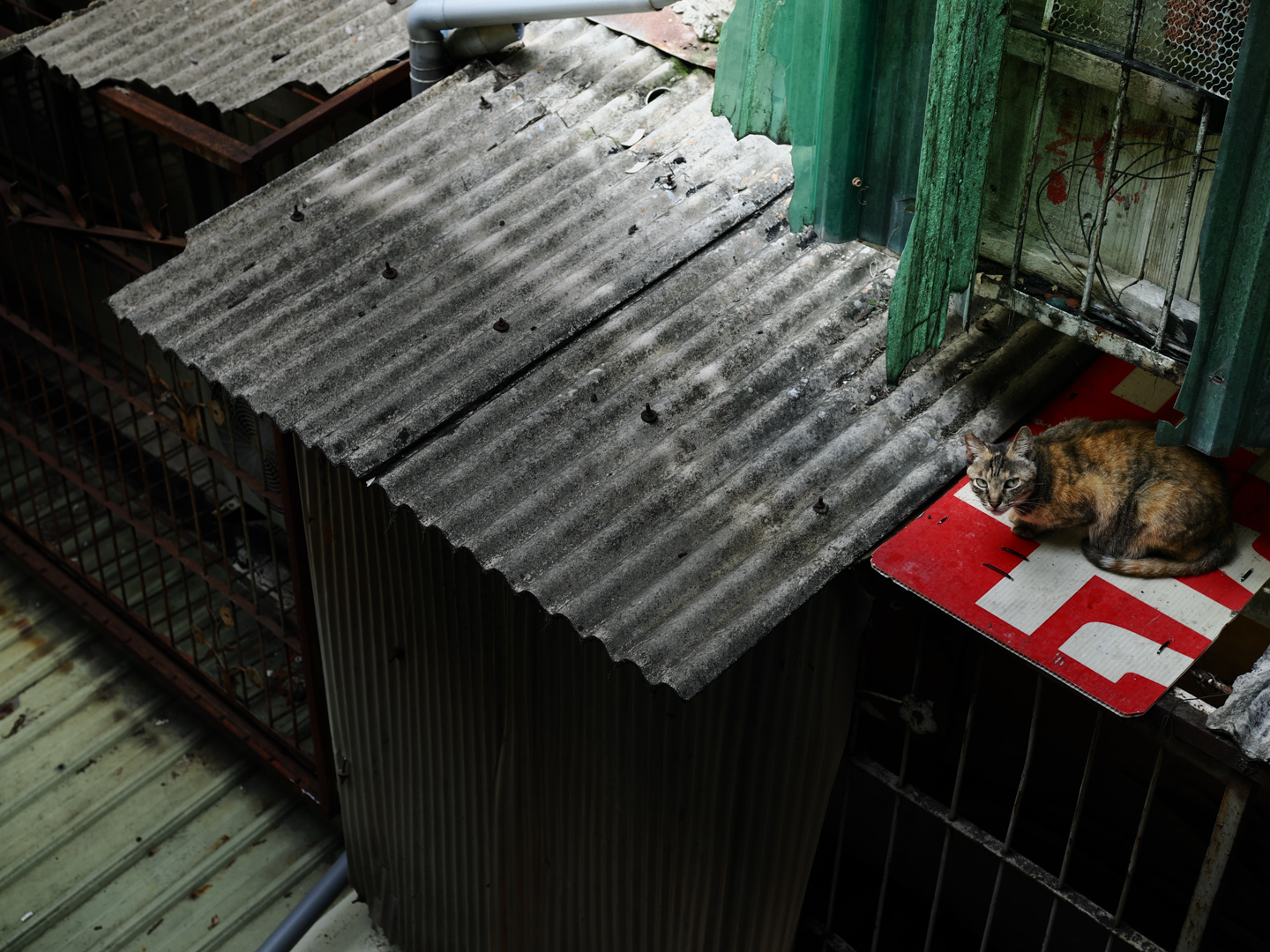 市場の2階で撮影中、ここに住む猫に出会いました。周囲の味のある雰囲気を伝えつつ、猫の存在感もしっかり伝わる1枚となりました。