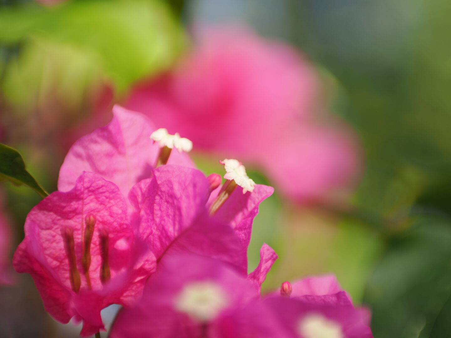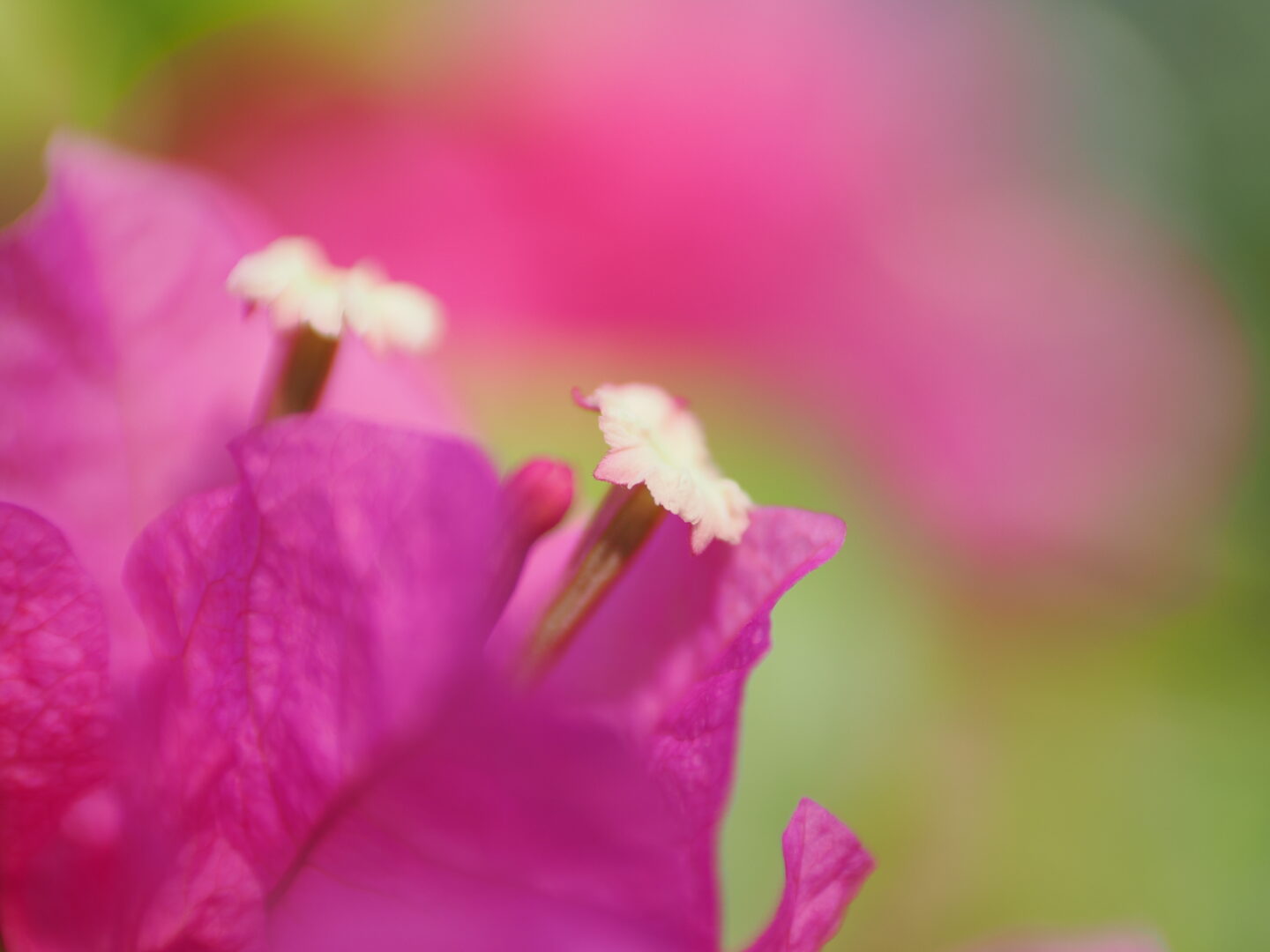 絞りをF8.0まで絞りレンズの解像力を確認する。フォーカスを合わせたブーゲンビリアの白い花と被写界深度の範囲に含まれた赤い包葉のディテールが極めてシャープに描写されていることが判る。花びらの細かい筋や葉脈もしっかりと分離している。実勢価格3万円前後の製品とは思えないほど高い解像力だ。