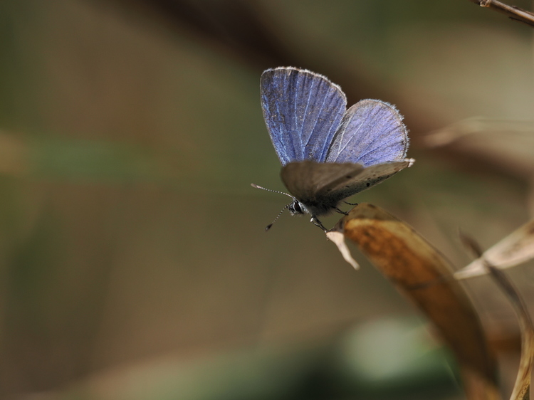 最短撮影距離付近で撮影。小さなシジミチョウもこの大きさに写る。昆虫にうまく接近する技術を持たない筆者でも、超望遠マクロなら逃さずに撮影できる。
