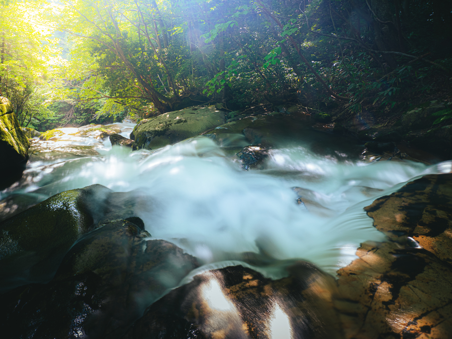 スローシャッターが活躍してくれる代表的なフィールドといえば滝や川など水の流れるロケーションだ。流れる水はシャッタースピードにより表情が変化する被写体であるためスローシャッターで撮影することでまるで絹の様な表情に変化する。スローシャッターといえばレリーズケーブルもしくはセルフタイマーと三脚を使って手ぶれしない様に撮影するのが定番だった。しかしM.ZUIKO DIGITAL ED 12-100mm F4.0 IS PROとOM-Dの組み合わせはそんな「常識」を覆してしまった。