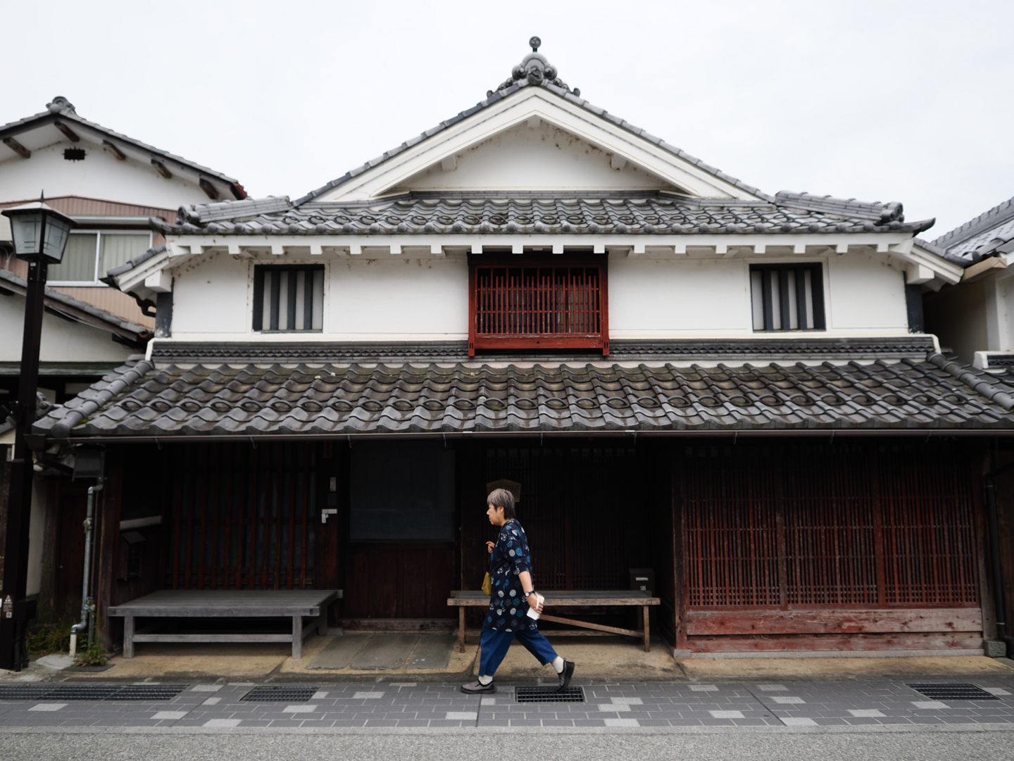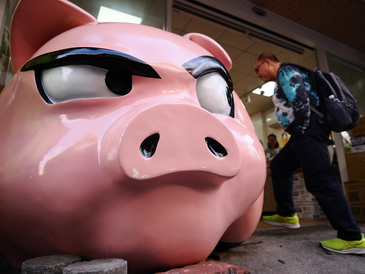 店先になんとも印象的な巨大なブタがいました。この目力を活かすべく、お店に入る人が現れたタイミングを見計らってローアングルで撮影。広角ゆえに大きなブタの迫力を伝えつつ入店する人の姿までを画面に収めて「入店する人をジロリと眺めるブタ」を撮ることができました。