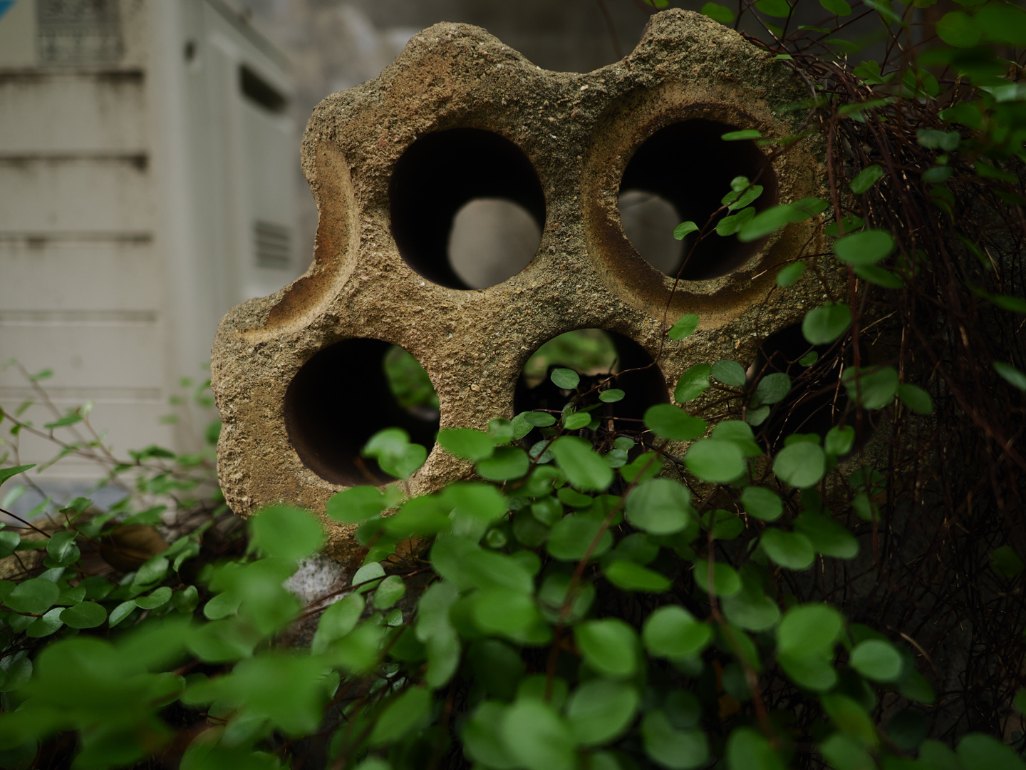 道端に置かれた謎の物体ですが、周囲の植物と相まってとても可愛らしく感じられました。最短撮影距離の近さを活かして近づいて撮影したところ、実物は手のひら大程度の大きさながらとても存在感のあるものとなりました。被写体との距離が変わるだけでこれほどまでに写真の印象も変わります。