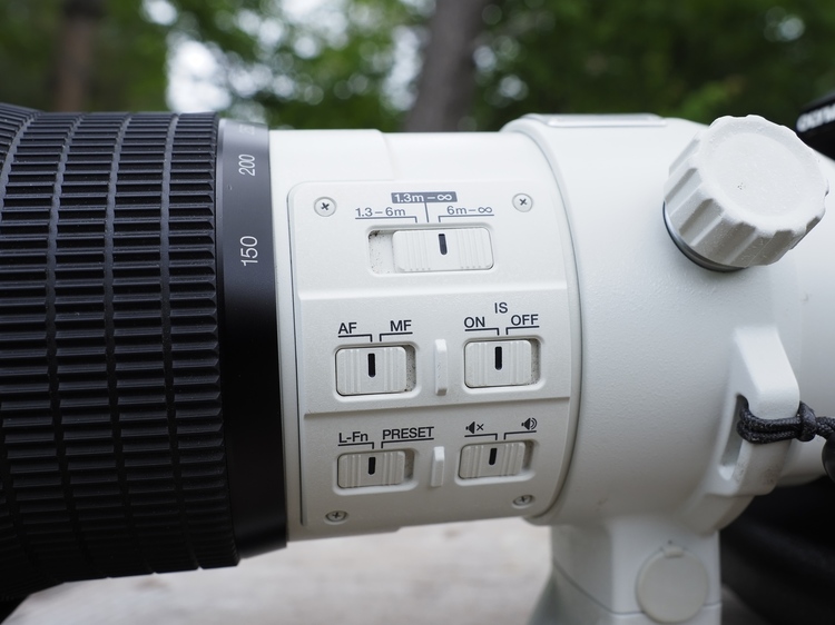 ズームリングもよい感触で、スムーズな画角調整が可能。ストラップ使用で肩から下げたまま、鳥を探して歩いていると、気づかぬうちにズームが動いている、というケースも多くて、望遠側で小さなクリックがあると良かったかな、と思ったりもする。野鳥相手では基本的に400mm(500mm)域で撮影を開始することが多いので、注意したい。劇場など、小さなクリック音さえ立てられないシーンでの使用に配慮した設計なのかもしれないが。
