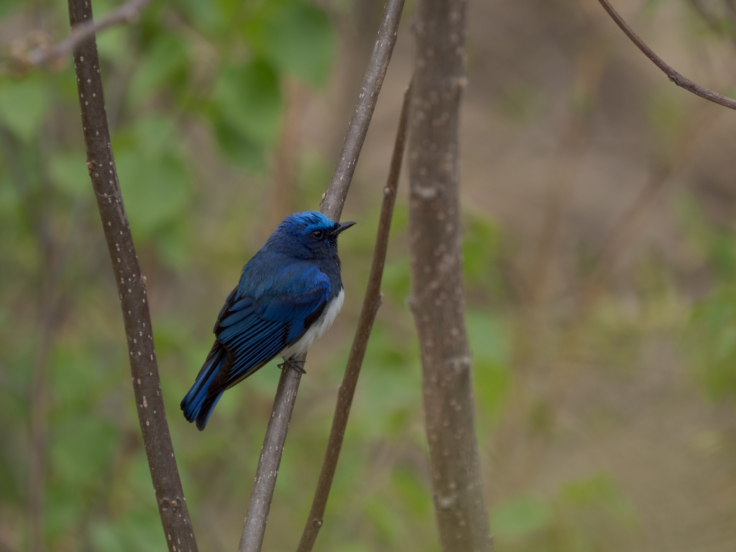 作例のオオルリは、初夏に日本にやってくる夏鳥。この時期の森は葉が茂っていて、見えるアングルを探すのが精一杯だ。手持ち撮影のメリットが実感できる場面でもある。オオルリの深い青は構造色と言って、晴れた日より、曇りの光により映える。必然的に光量は減り、シャッターも遅くなるが、手ぶれ補正に助けられブレのない撮影が可能だった。