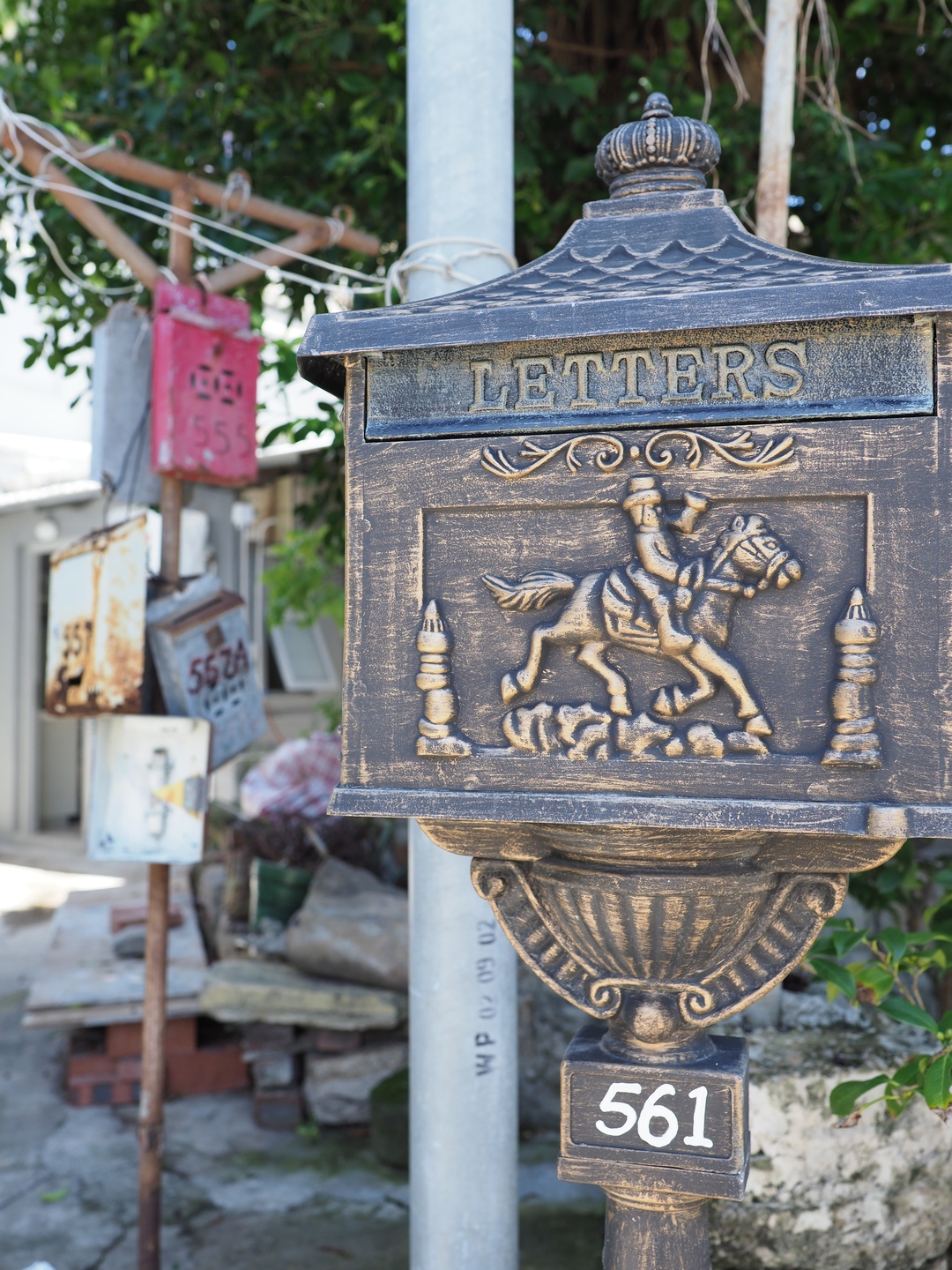 この石澳のビーチの周りには民家や別荘と思しき瀟洒な家が立ち並んでいるのですが、そんな家々の中に素敵な郵便受けを発見。その奥には一般的な香港の郵便受けが無造作に吊るされている様子も見て取れます。17mmの画角だと、このように主役に寄って大きく写す一方で、背景もそこそこ広く入れることができるのもまたポイントで、使いやすいと感じている点です。