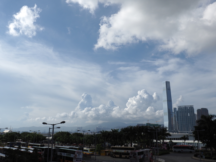 この時は九龍側にホテルを取り、到着後に荷物を置いて一段落したら海を渡るスターフェリーを使って香港島へ。桟橋から長い渡り廊下を歩いていて、ふと振り返ると夏らしい雲が遠くに立ち上がっているのが印象的で、こう言っては何ですがあまり深く考えずに撮った一枚がこちら。
