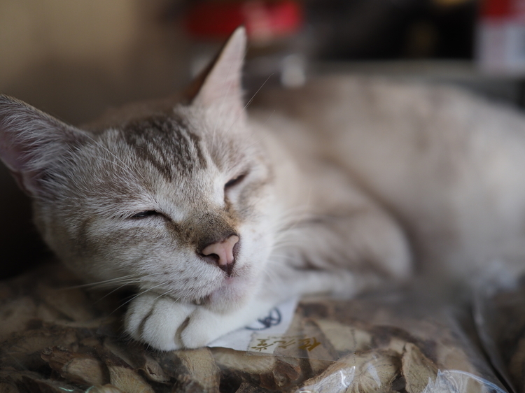 尚、カメラに搭載されている静音シャッターを使用することで、乾物屋さんの軒先で商品の上に陣取って気持ちよさそうにお昼寝をする猫の邪魔をすることなく撮影させてもらうことができました。