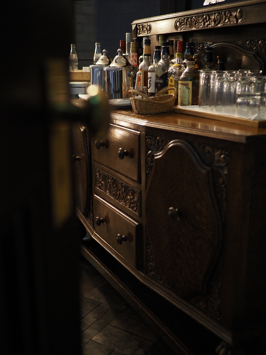 レトロ建築をリノベーションしたホテルには宿泊客用にクラシカルな雰囲気が漂う素敵なラウンジがありました。ただ、写真を撮影するには非常に暗い……。そんな場面でも絞りを開放のF1.4、ISO感度は800に設定、カメラの5軸手ブレ補正のおかげで1/30秒でも安心して撮影することができました。