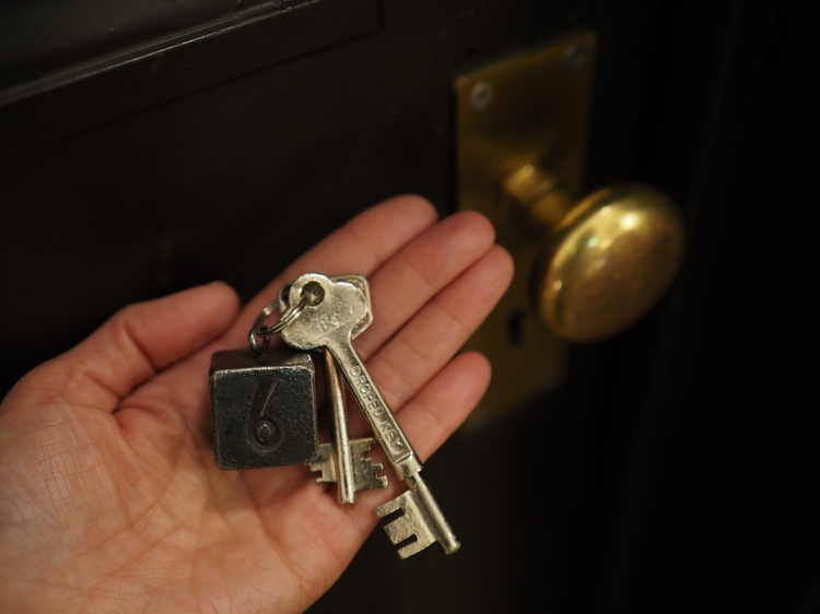 宿泊したホテルのキーがなんともレトロ!前方後円墳のような鍵穴に金属製の鍵を差し込むのですが、鍵と一緒にずっしりとした重みのある部屋番号のチャームがついていました。せっかくなので、手のひらにのせて鍵穴と一緒に撮ってみましたが、主題も背景も程よい大きさに収まりました。