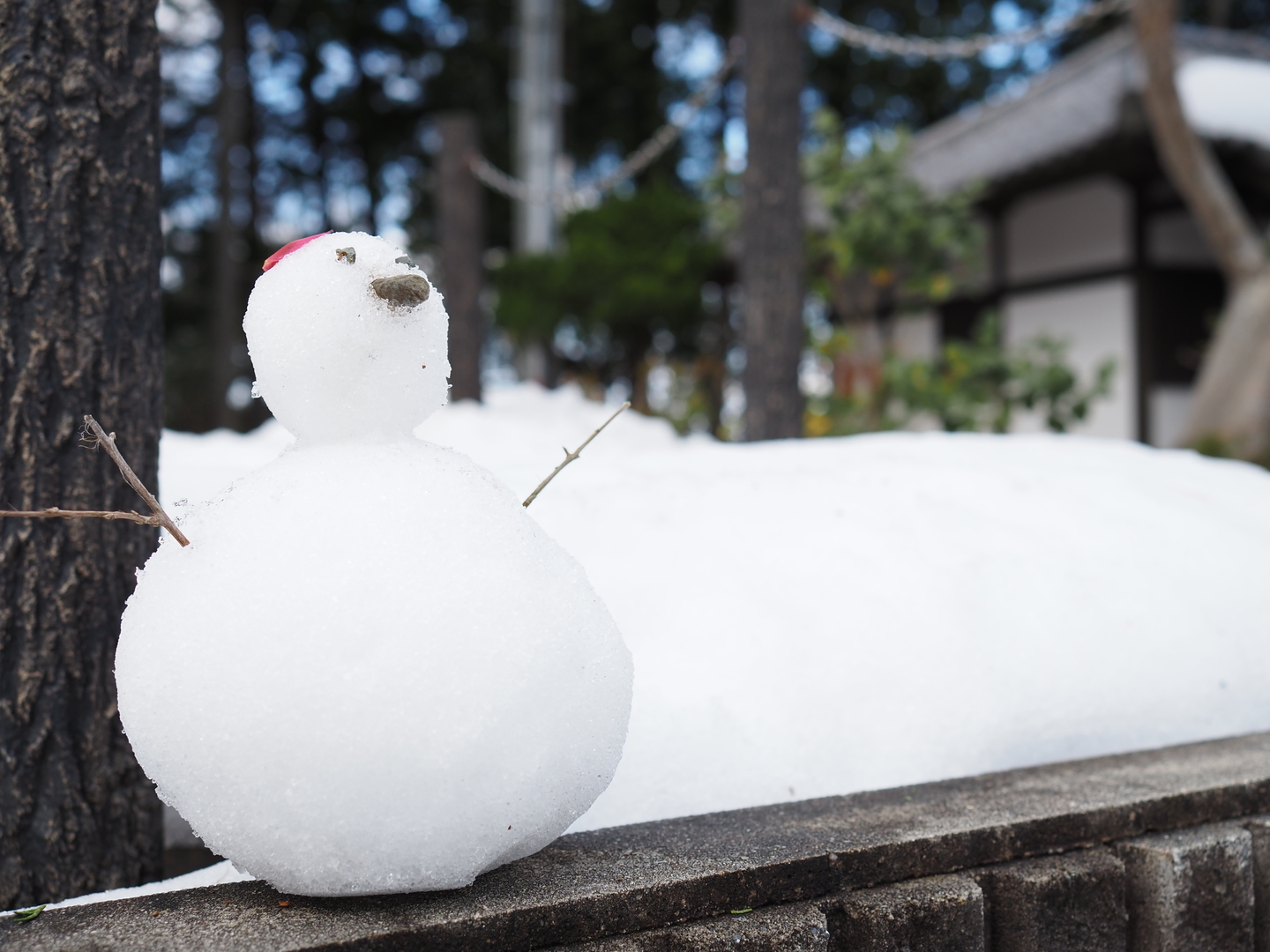 誰かが作った雪だるまにぐぐっと接近。石でできた鼻周りの雪の粒までしっかり解像してくれています。