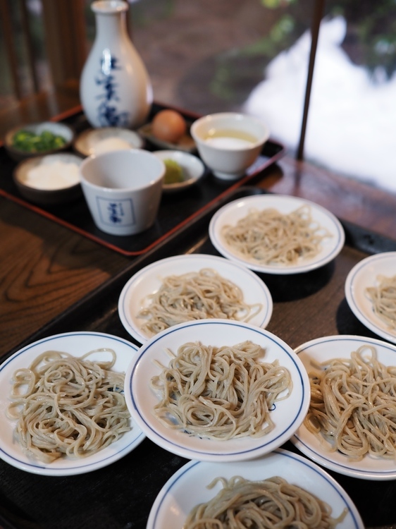 皿そばで有名な出石へ。先輩写真家に教えて頂いたお店へ出向くと、雪の積もった中庭側の席に案内されました。目の前にどん!と置かれたお盆に広がるお皿を撮るのに、25mm(換算50mm)のレンズだと確実に狭すぎたところでした。