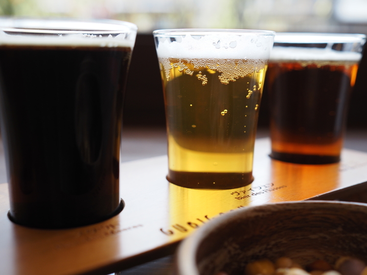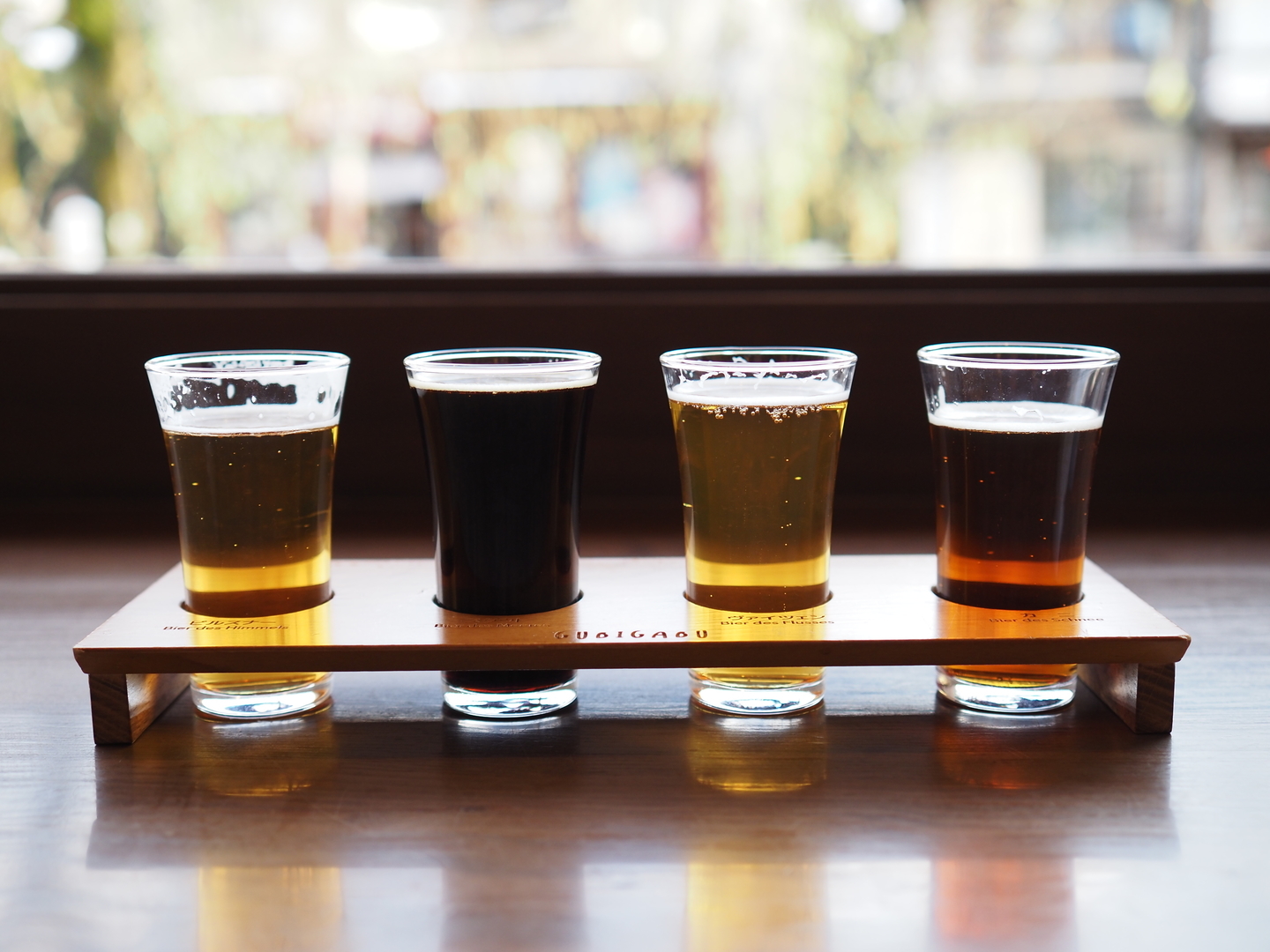 地ビールの飲み比べをしてみました。ちょっと泡が消えてしまいましたが、小ぶりなグラスが並んだ様はやはり押さえておきたいところ。座ったままで撮影しましたが、目の前に並んだグラスがちょうどピッタリ画角に収まりました。その後角度を変えて寄ってみることで、小さな泡をきれいに捉えることができました。