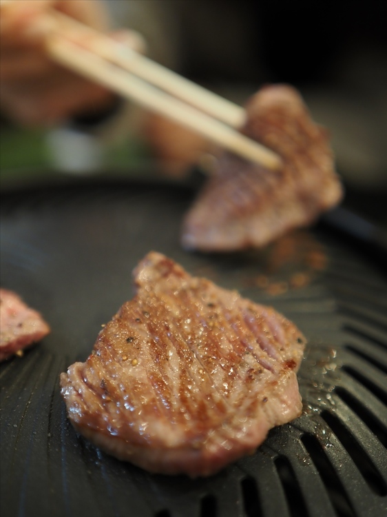 友人宅にお呼ばれ。丁寧に切れ目が入れられた牛タンや、ご時世柄ひとりずつお皿に用意された数々のお肉を堪能。友人の丁寧な仕事ぶりを伝えてくれるレンズの描写に、この写真を見返すだけでもごはんが進みそうです。