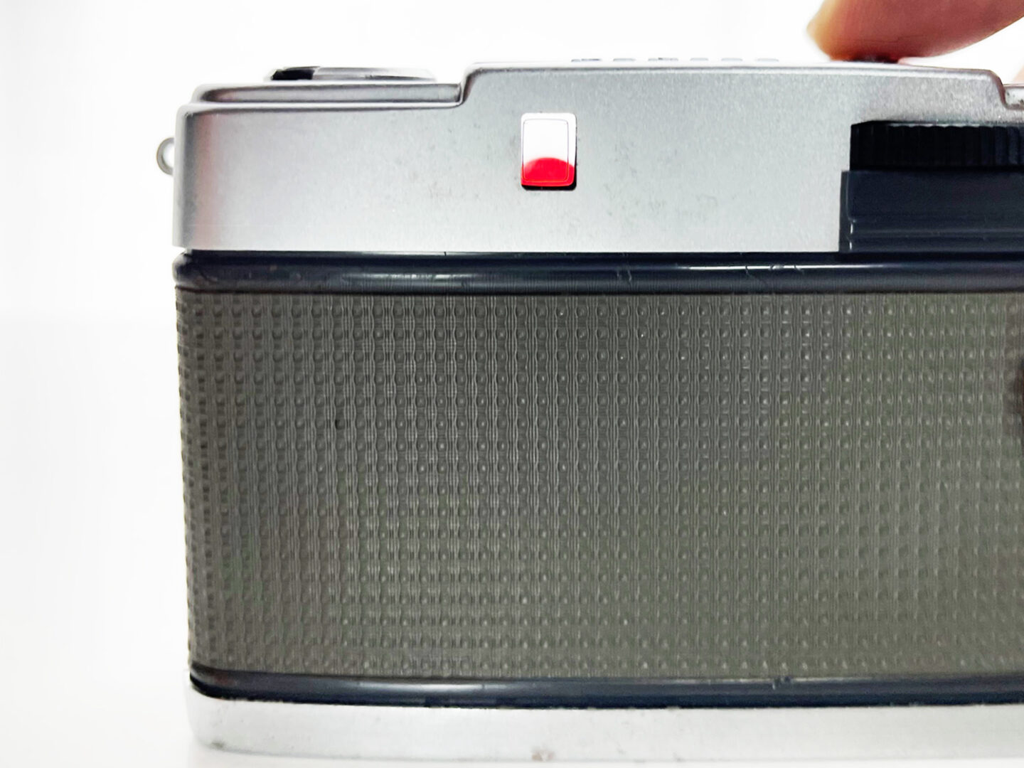 「オリンパス ペンEES」はちいさなコンパクトフイルムカメラです。今回はジーンズのポケットに押し込んで持ち歩いてみました。少々圧迫感はあるものの、両手が空いて気軽に持ち運べるのは非常に便利です。純正のハンドストラップは、60年ほど経過して経年劣化もあるのでハンドストラップだけで持つのは少々心もとないので、ハンドストラップを手に通してカメラ本体を持つように心がけています。もちろんカメラの両側にストラップを装着するための金具はあるので、自分にあったストラップを付ける事も可能です。