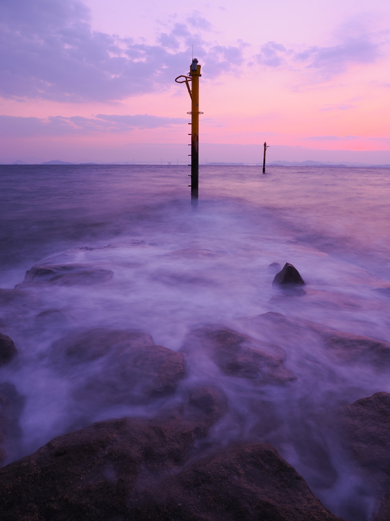 まだ陽がある状況だったので通常であれば1/15秒のシャッタースピードとなるところ、ライブND64を使うことでシャッタースピードを4秒にまで落とすことができた。4秒のスローシャッターのおかげで波の軌跡を表現することができた。