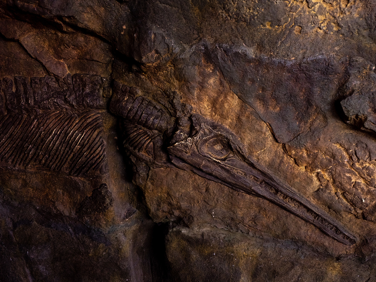 暗い通路内部になにかが掘っているなと思いじっくり見てみると化石の展示がありました。暗すぎて殆どの来館者の方は通り過ぎていましたが、周りの環境がかなり暗くても最近のカメラはISO感度を高くすることでこの写真のように明るく表現できるので、暗い被写体を見逃さないようにしましょう。