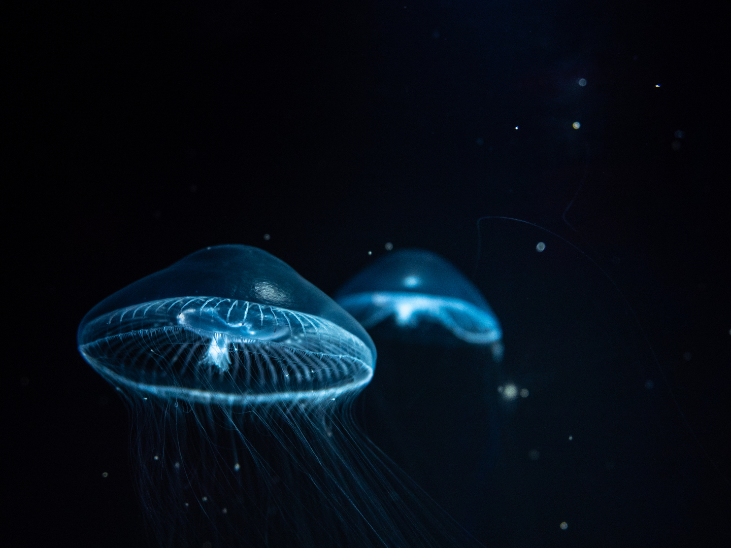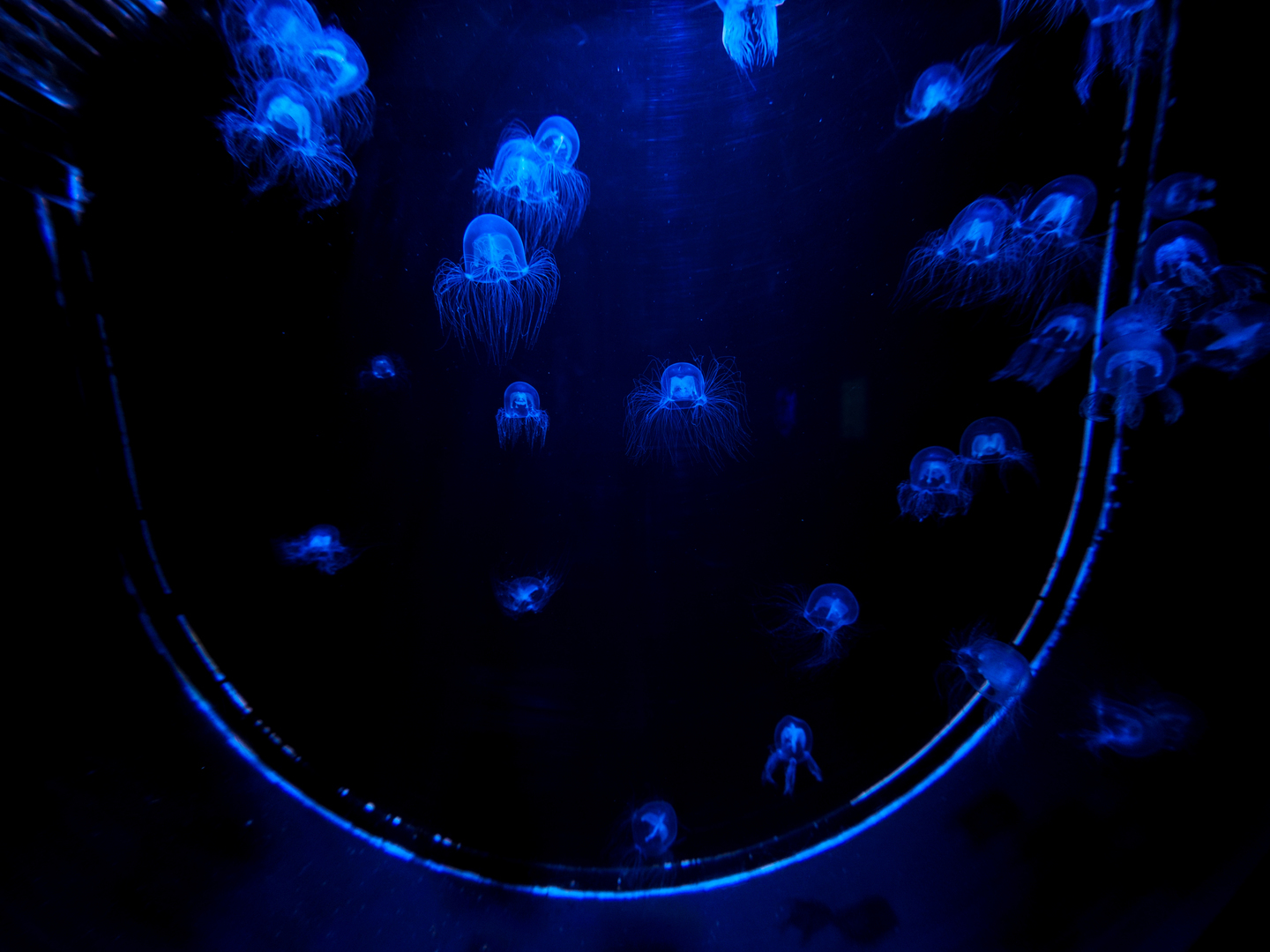クラゲばかりではなく、水槽や周りの景色も取り入れてみることをお勧めします。