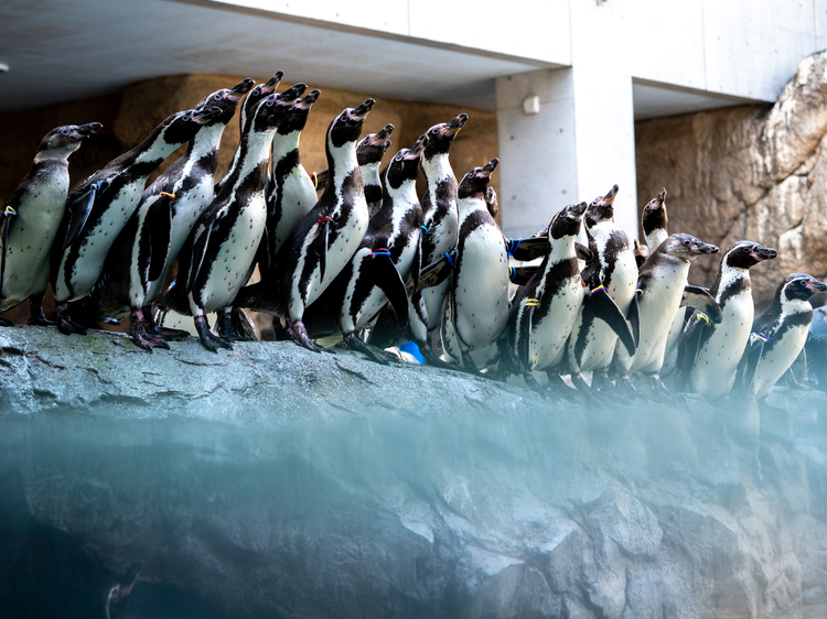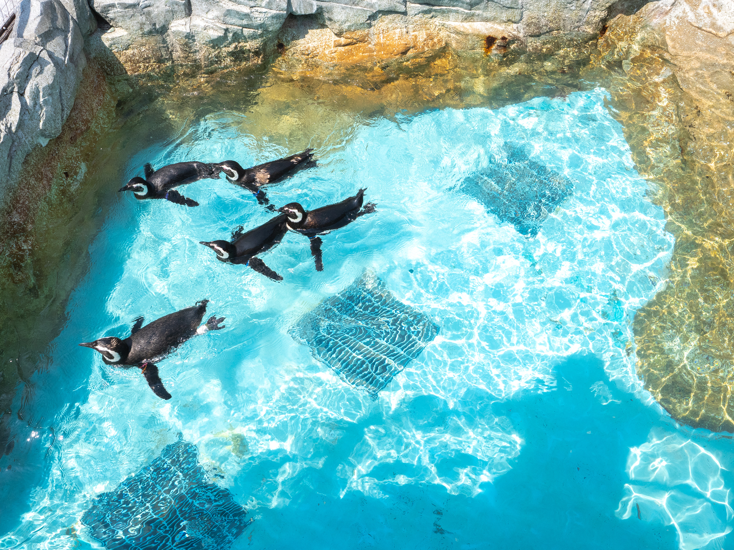 きれいな水槽にペンギンたちが気持ちよく泳いでいました。