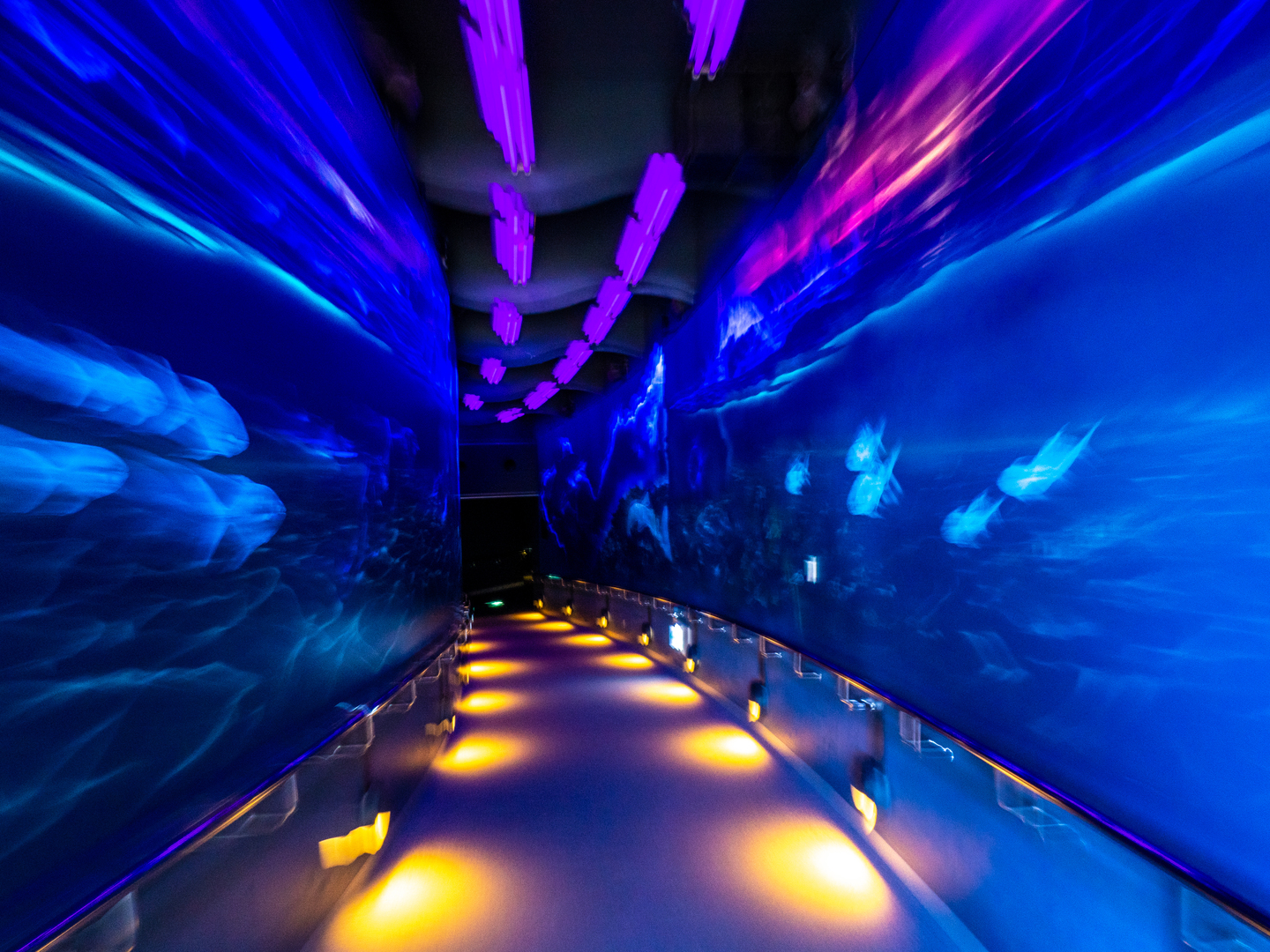 幻想的な通路に露光間ズームを使い、あたかも魚が泳いでいるような雰囲気に撮影してみました。