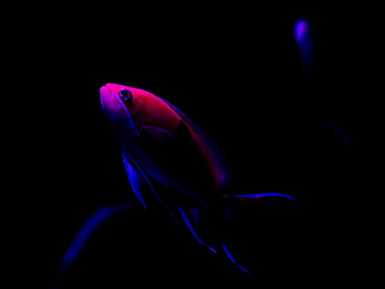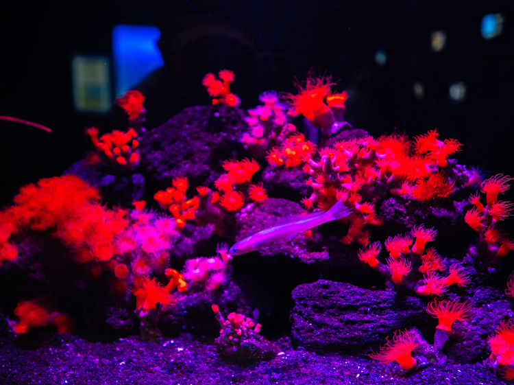 暗い水槽でもこの通り、ピントも来ました!露出補正をアンダーめにして美しく、幻想的な表現に出来ました。