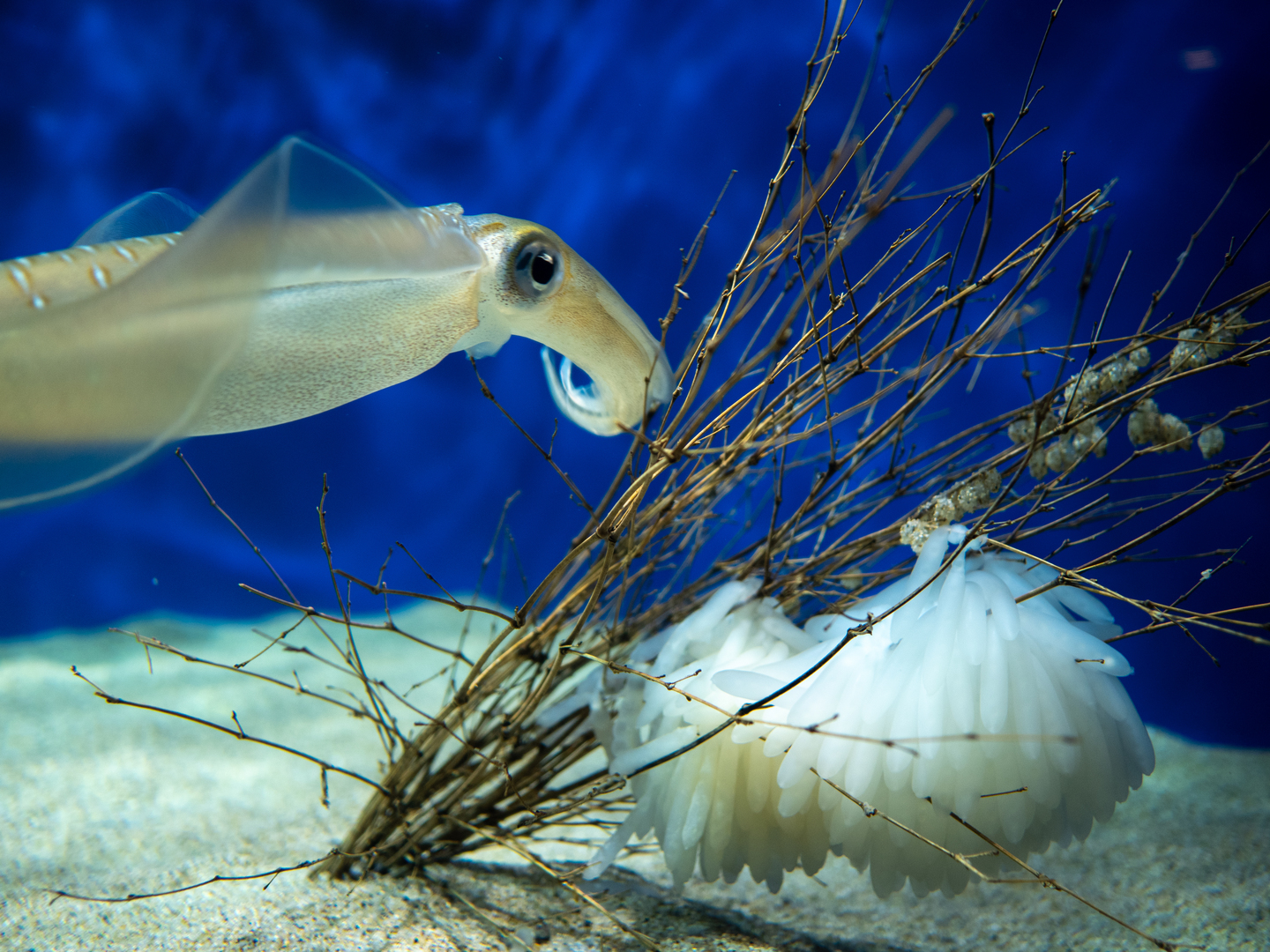 まさかアマモについた卵殻まで展示しているとは驚きが隠せませんでした。この水槽でアオリイカの新たな生命が誕生するのでしょう。その瞬間も見たくなりますので、また通いたくなりました。