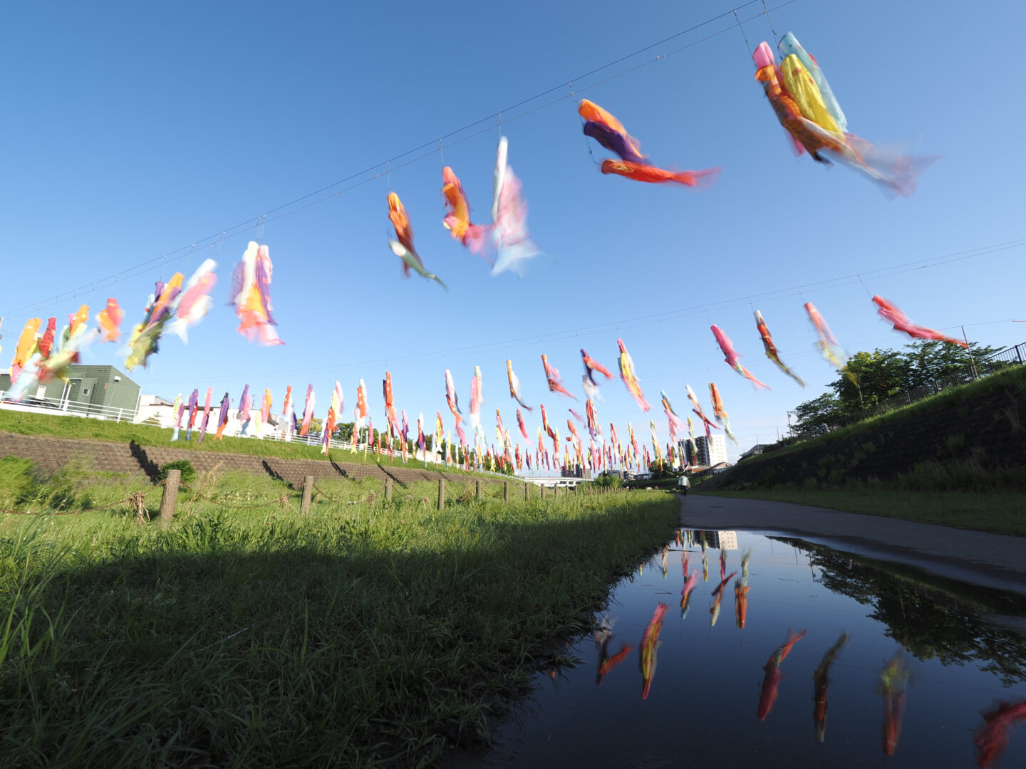 青空を背景に気持ちよさそうに泳ぐ鯉のぼりが風に揺れるさまを表すために、敢えてブラして撮影。人物や背景などはブレないようにしっかりカメラをホールドしながら撮影し、動と静の対比でメリハリをつけました。