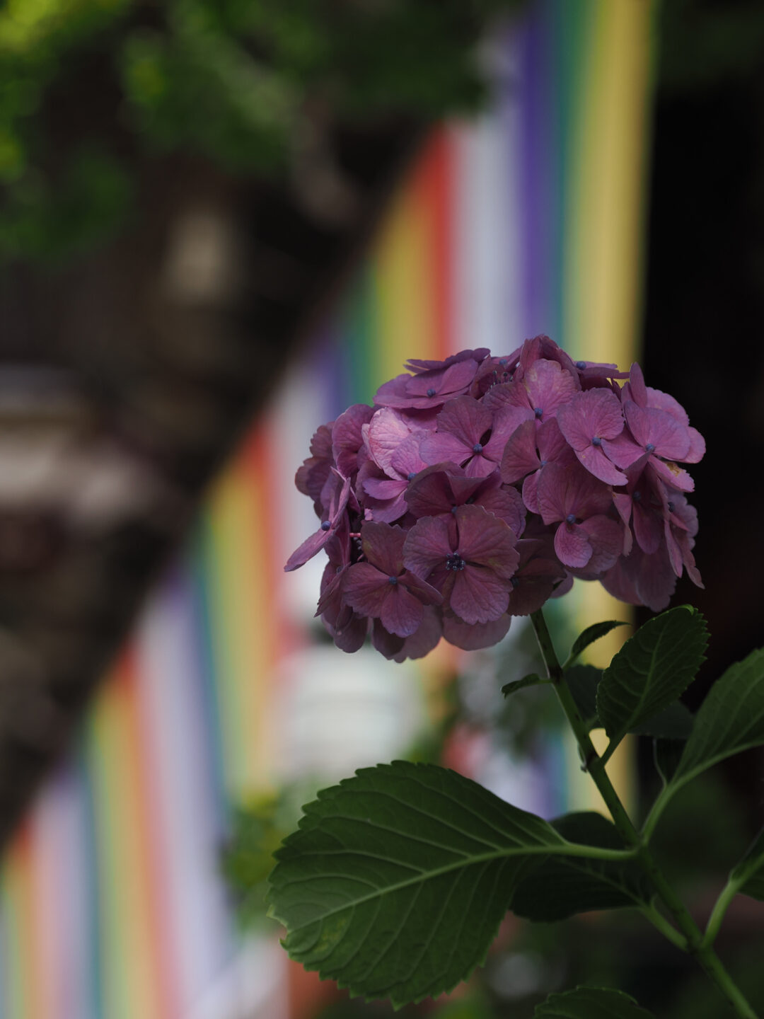 紫陽花と五色幕で露出差があり紫陽花が暗くなってしまったため、付属の小さな外付フラッシュ(FL-LM3)を弱く発光して全体の露出はそのままに紫陽花を明るく撮影。この小さなフラッシュは発光部が回転して光をバウンスさせることもできるのが大きな特徴です。それでいてとても小さく嵩張らないサイズゆえに常に鞄に忍ばせておくことができ、このような「ちょっと光を足したい」ときにとても助かります。