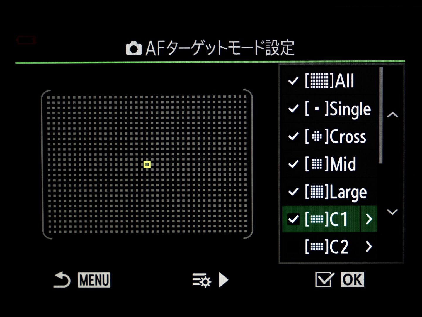 AFターゲットモード設定で、移動ステップのサイズ(幅)を「1」に設定すると、隙間なくピントターゲットを移動させることができます。