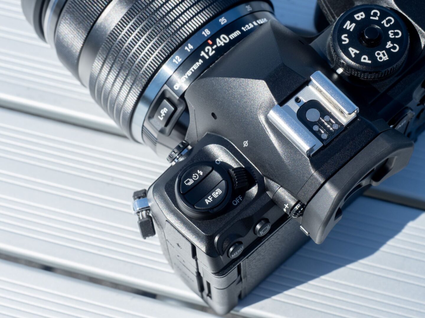 OM-1と同時期に発売されたM.ZUIKO DIGITAL ED 12-40mm F2.8 PRO IIとの組み合わせ。前モデルのM.ZUIKO DIGITAL ED 12-40mm F2.8 PROから刷新された際に、防塵防滴性能もIP53に引き上げられたレンズであることから、OM-1との組み合わせではこれまで以上の耐候性を発揮する。なおFnボタンが設けられているレンズでは、OM-1のカメラ設定でFnボタンに機能を割り当て可能だ。