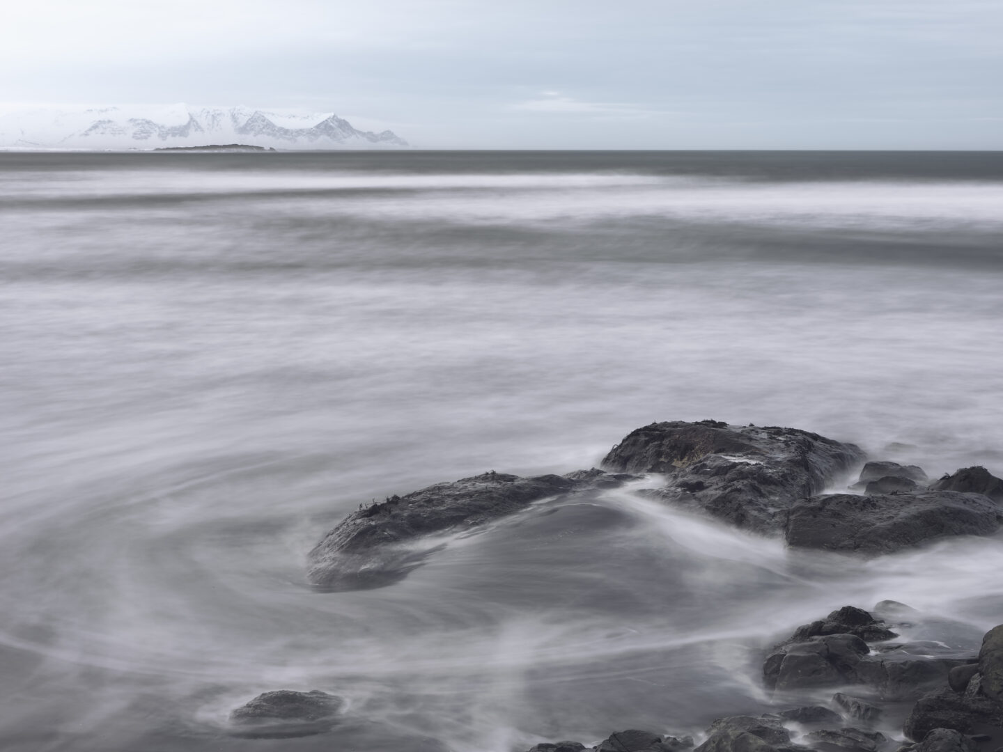 こちらはND128を使用して海岸沿いの水の流れをとらえた。長時間露光で波を撮影すれば非現実的な表現ができる。