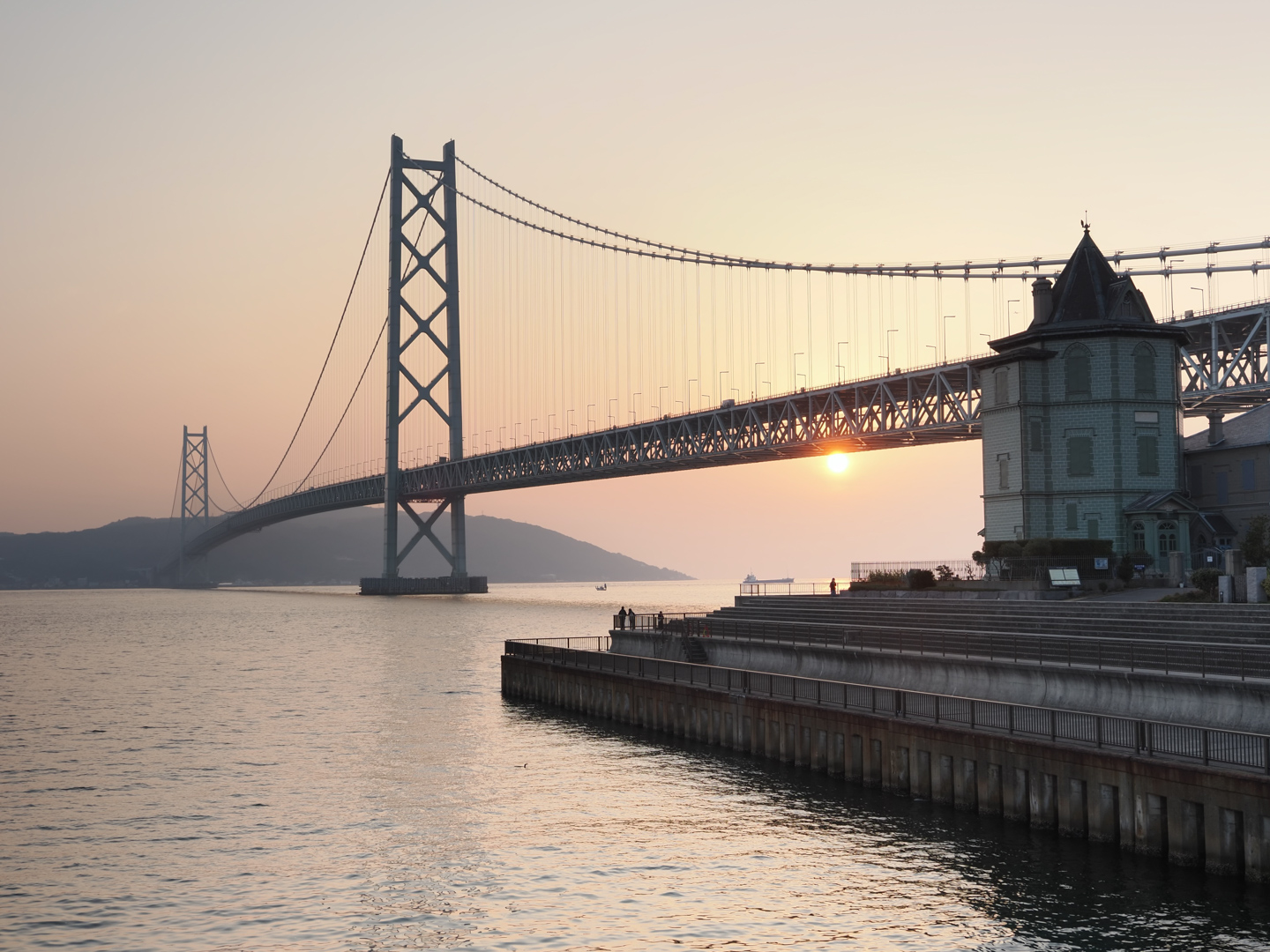 明石海峡大橋にピントを合わせた画像と、マニュアルフォーカスでピントをずらしてライトアップされた光を玉ボケにした画像の2枚を1枚に重ねました。OM SYSTEM機では、続けて2枚を重ねる撮り方だと合成後の1枚のみが記録されます。(JPEGのみ、RAWのみ、JPEG+RAWから選択できます)