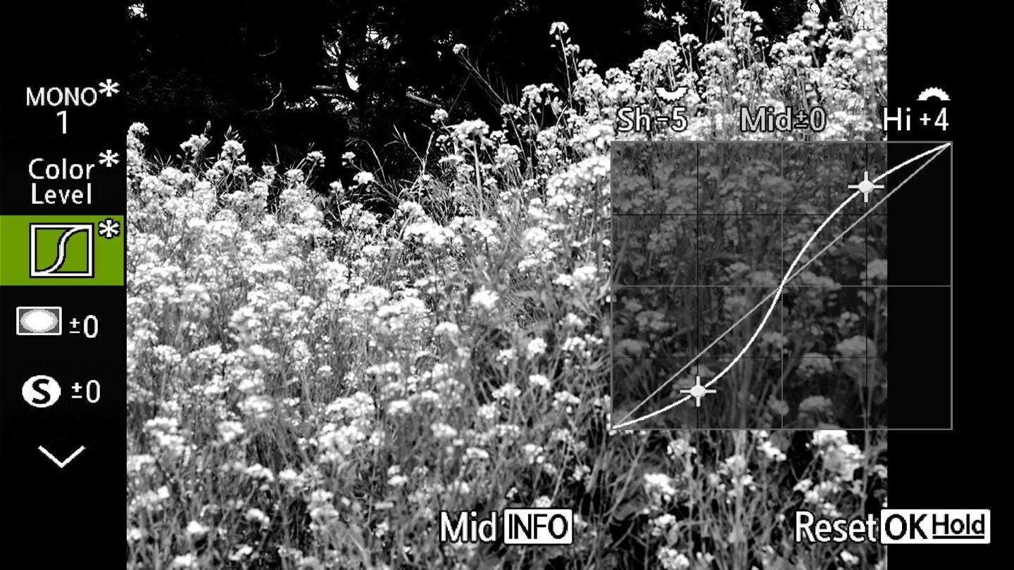 ライブNDは撮影画像全面にND2(-1EV)から1EV間隔でND64(-6EV)までのND効果を選択することが可能(シャッター優先モード、マニュアルモードで使用可能)。ライブGNDは画像のなかで上下左右のいずれかの方向から部分的にグラデーションでND2(-1EV)から1EV間隔でND8(-3EV)までのハーフND効果を付与することができる。ただしライブNDとライブGNDを同時に適用することはできない。