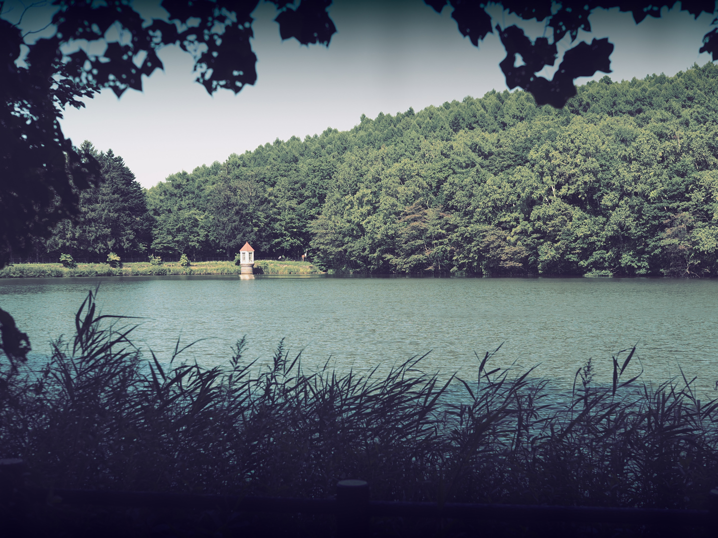 西岡公園を歩いていると、ほのかな光と映り込みが気になった。