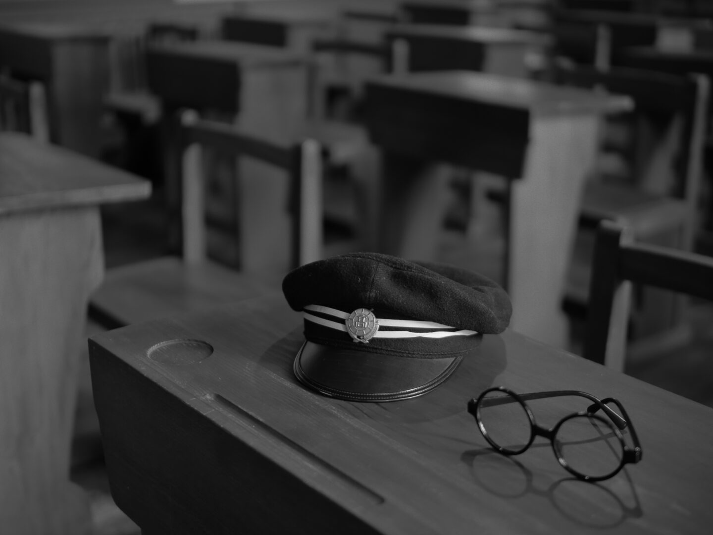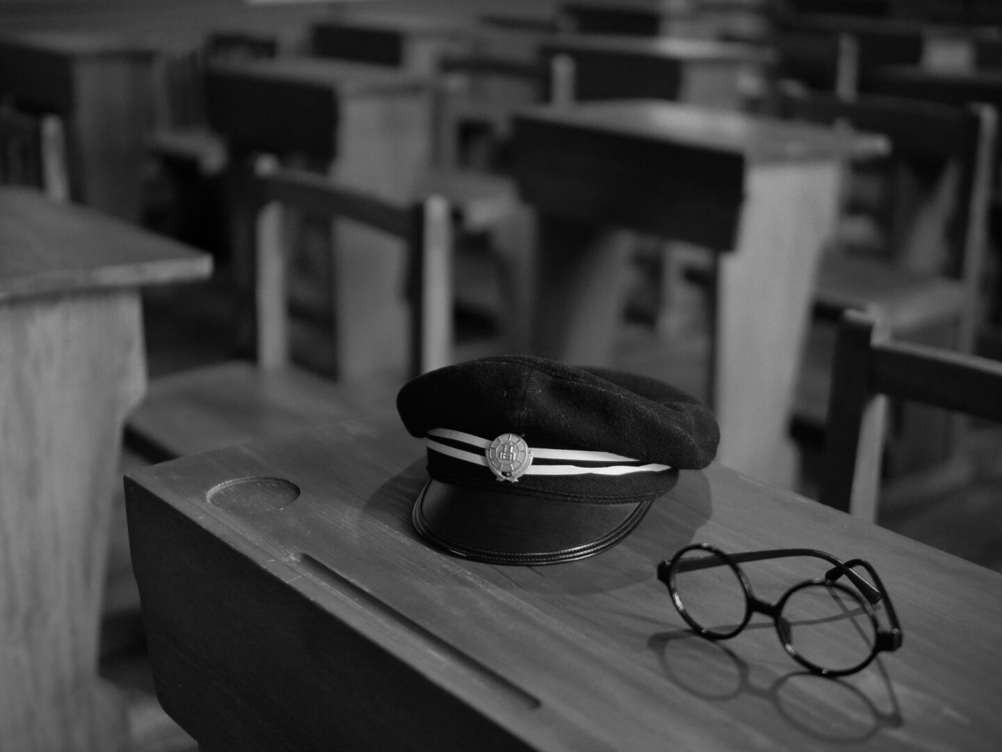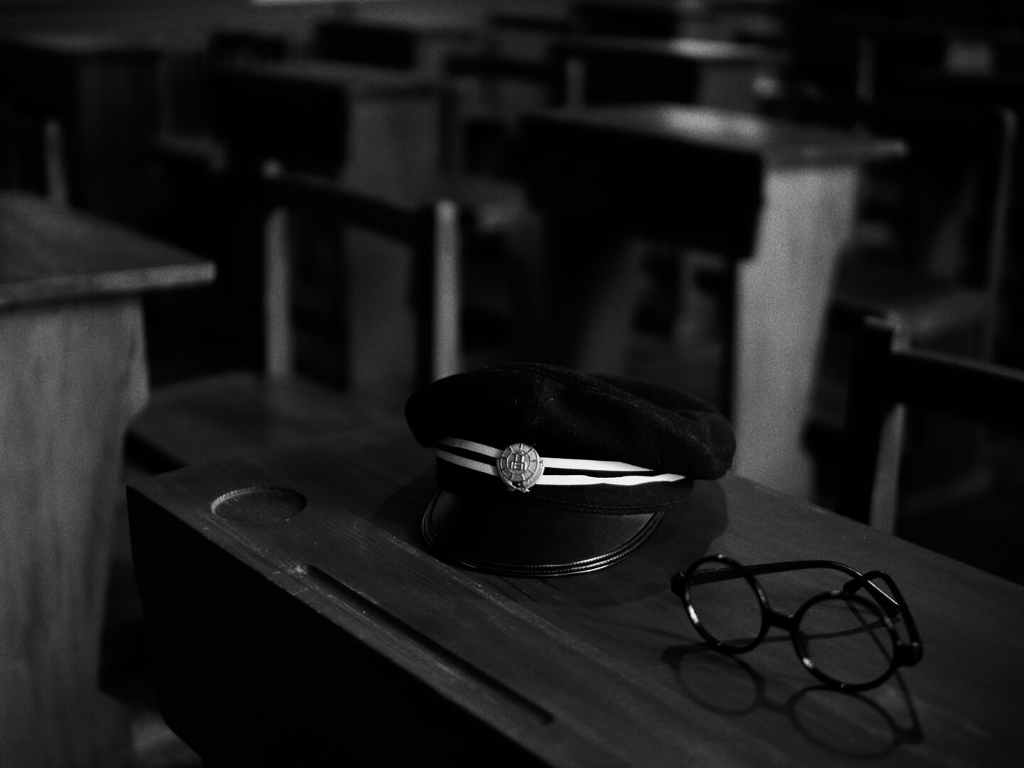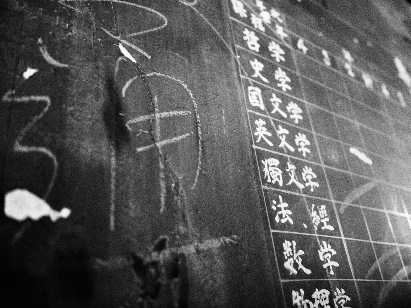 黒板に残された文字や経年劣化した質感は、上品に仕上げるより荒々しいほうが似合うような気がしたので、モノクロプロファイルコントロールよりもハイコントラストで粗い粒状感が特徴のアートフィルター「ラフモノクロームI」を選択しました。古いフィルム映画の一幕のようです。