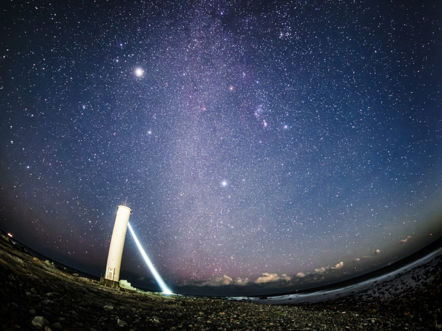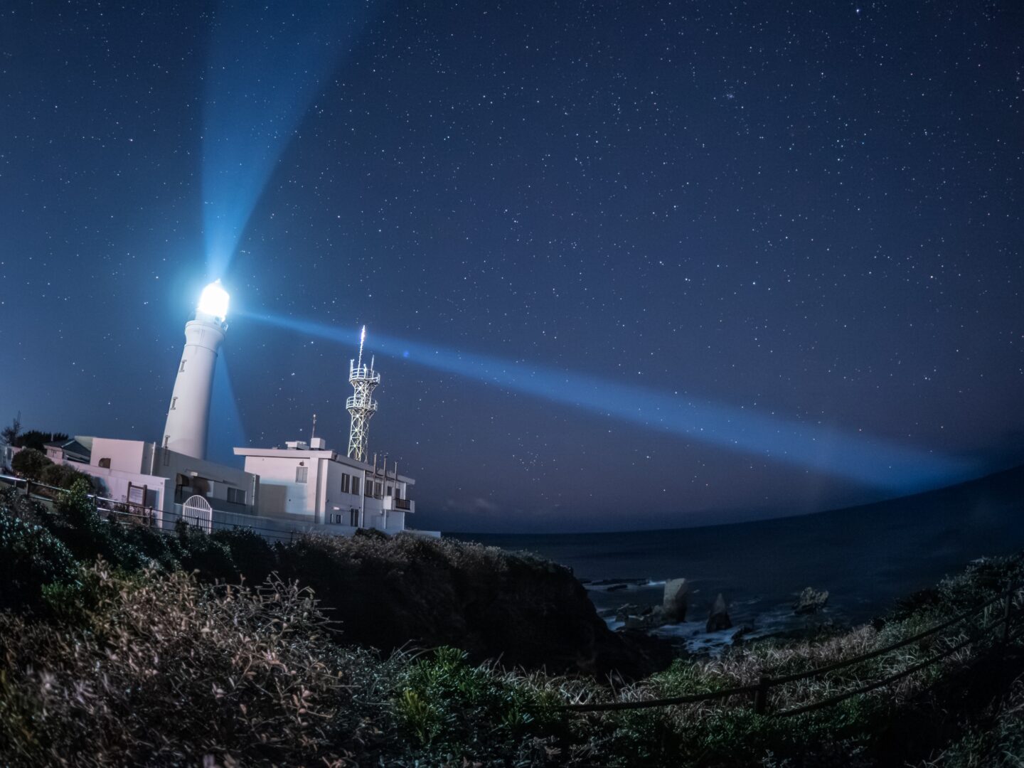 フラッと訪れた岬で手持ち撮影。1秒の撮影待ち時間を考慮しながら、灯台の光線が回るタイミングを見計らってシャッターを切った。灯台の高輝度部と星空の諧調を両立させるように意識してRAW現像している。