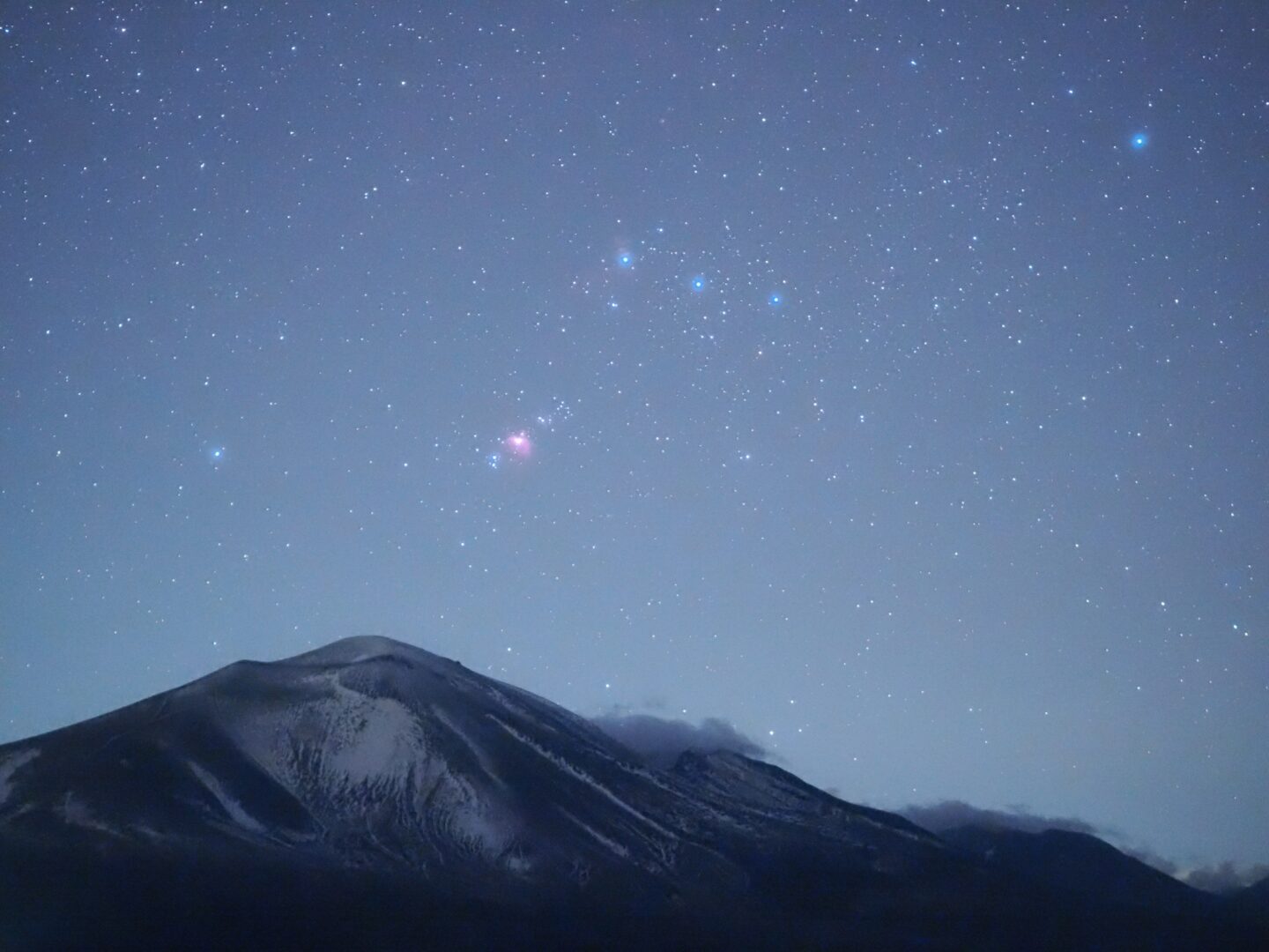 C1モード、カラープロファイル「COLOR1」のプリセットで撮影。背景を引き締める「ハイライト&シャドウコントロール」と赤い星雲を強調するカラー設定で、印象的な冬の星空写真になった。