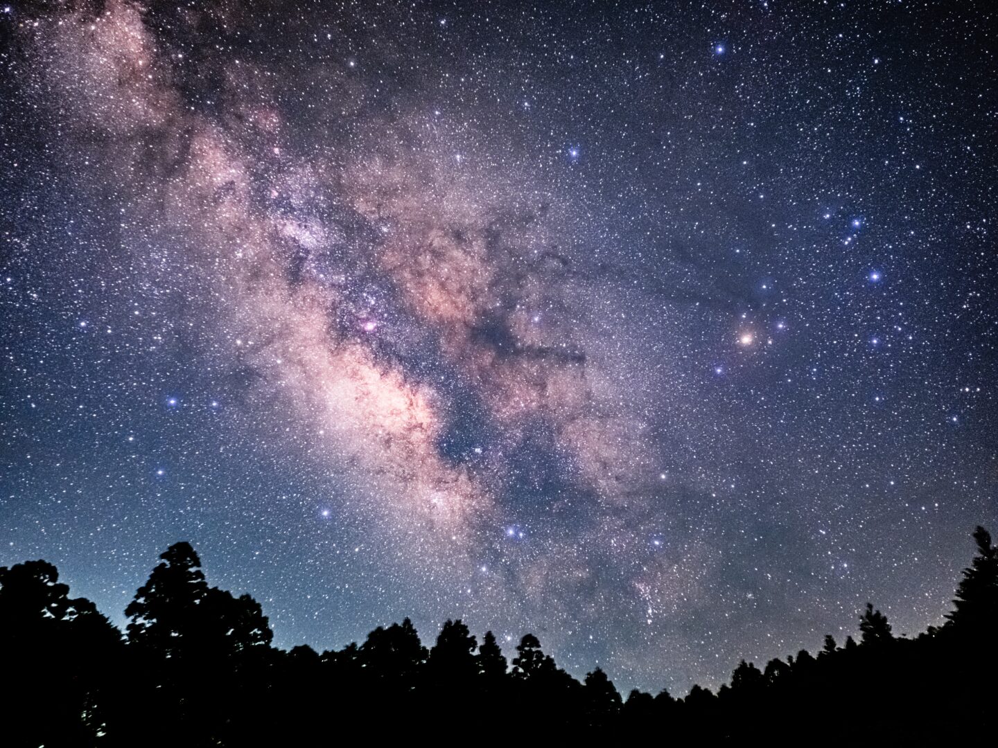 C1モードで撮影。高コントラスト高彩度な設定で、天の川や赤い星雲がはっきりしてきた。