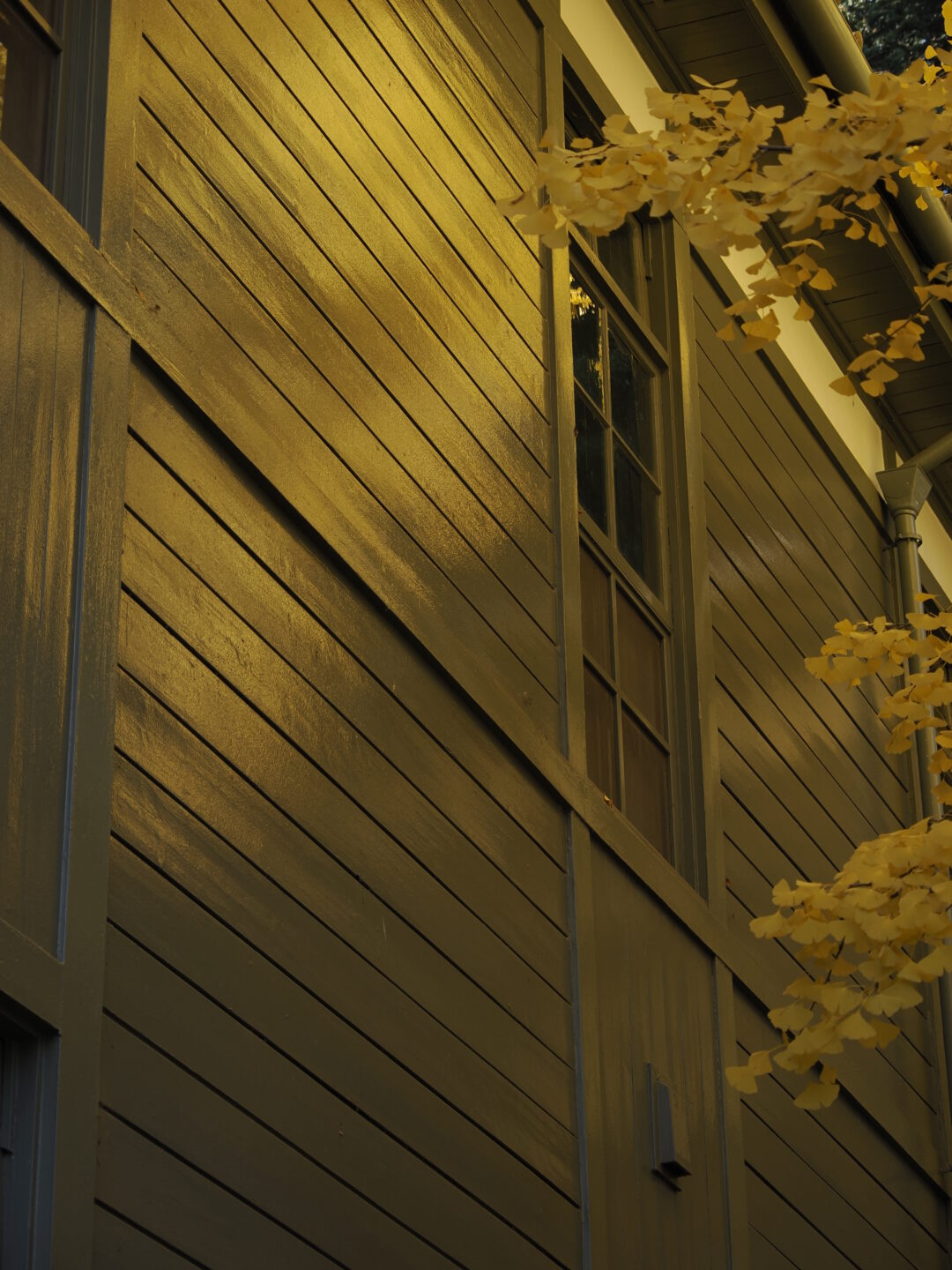 今回の撮影会では、「物だけでなく、光を見て撮影すると印象的な写真に仕上がります」とお伝えしたのですが、忠実に実践してくださった一枚だと感じました。建物の造形でも、黄葉でもない、壁面に反射した黄葉の光が美しいと感じられたのだ…と。立派なイチョウの木でしたので黄葉を多めに入れてしまいたくなりますが、わずかな量にとどめたことでむしろ、イチョウの木の大きさや黄葉の美しさを想像させられました。