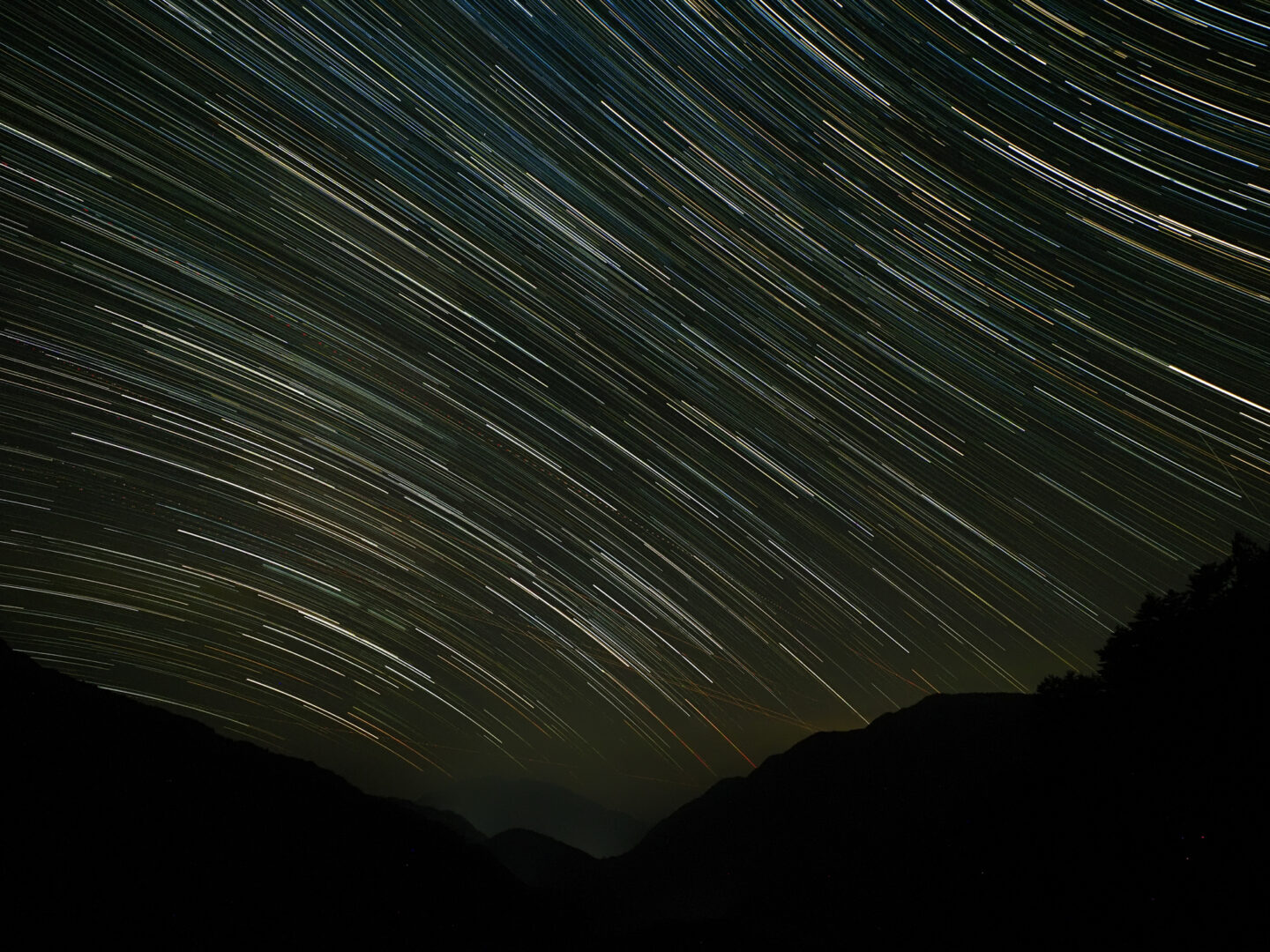 星の軌跡を撮影するためには長時間露光が必要となります。デジタルカメラの場合、長時間シャッターを開けた撮影をするとノイズの多い写真になりがちです。しかし、ライブコンポジットは短いシャッター速度の撮影を繰り返し、1枚の写真に合成する機能となっており、長時間露光から発生するノイズの心配が無いんです。